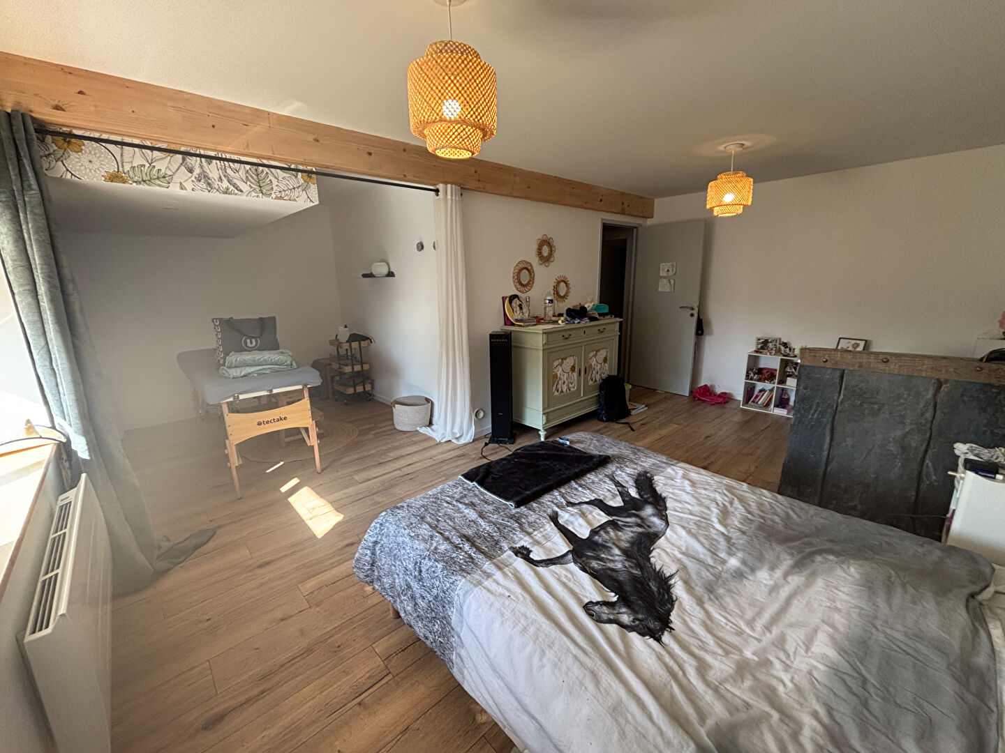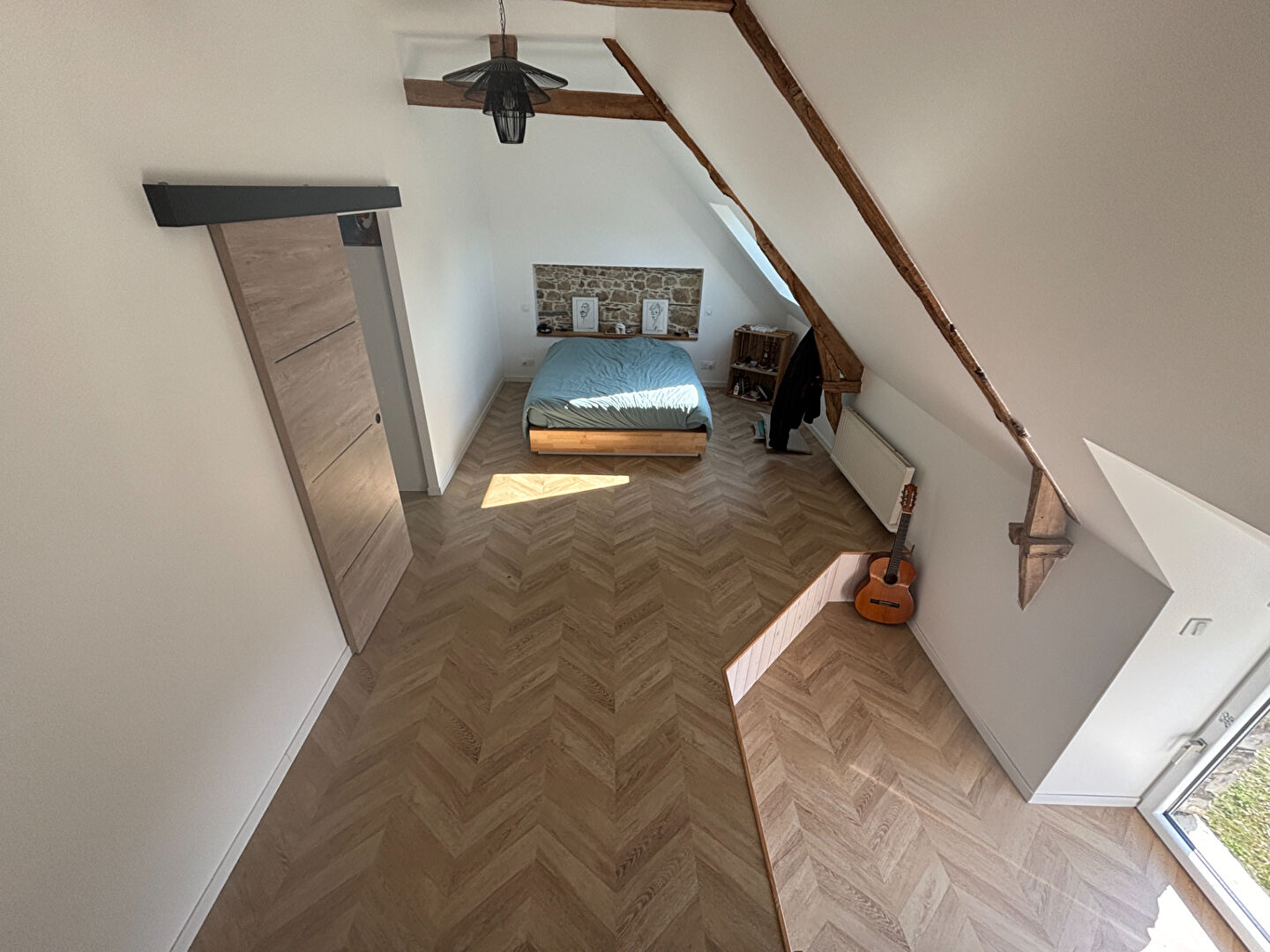L'étage s'ouvre sur une mezzanine d'environ 20 m², menant à une grande chambre et une suite parentale comprenant dressing, salle d'eau et W.C.