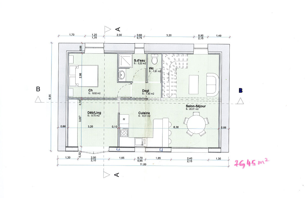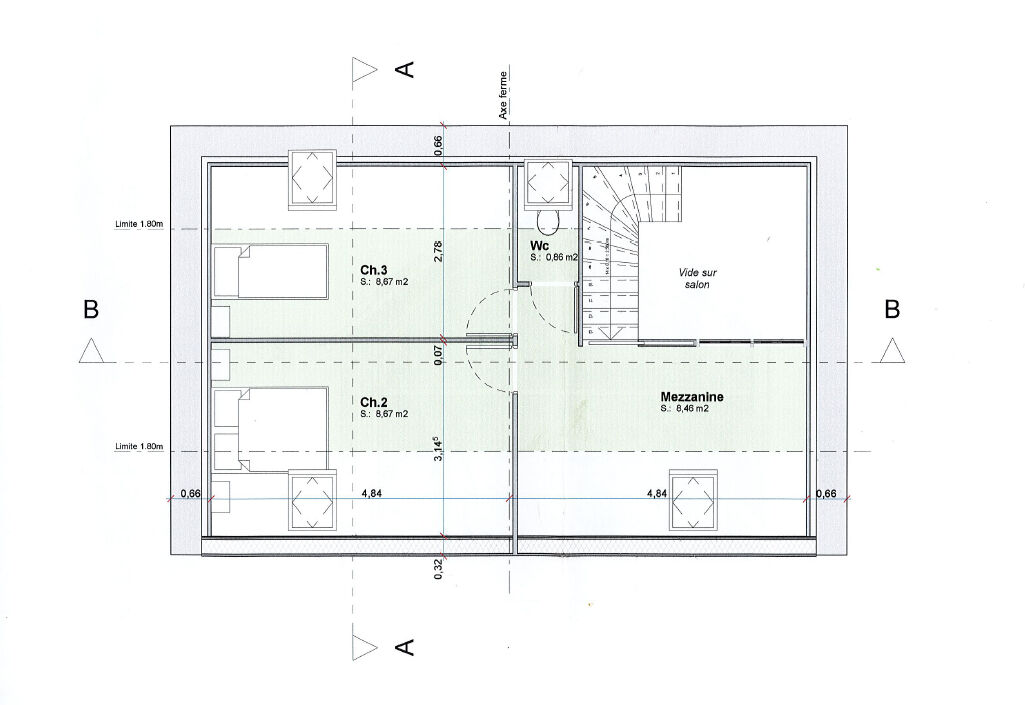 Au rez-de-chaussée, une surface de 55m² avec un étage d'environ 25m².