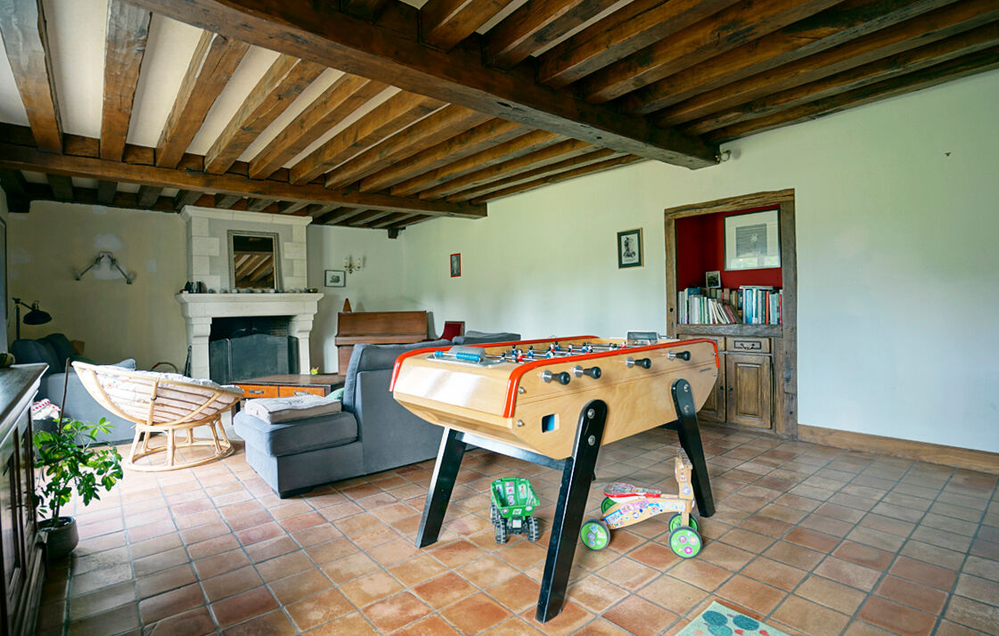 Elle se compose d'une belle pièce de vie lumineuse avec poutre apparentes et cheminée, une cuisine spacieuse et conviviale ouverte sur la salle à manger, une arrière cuisine.