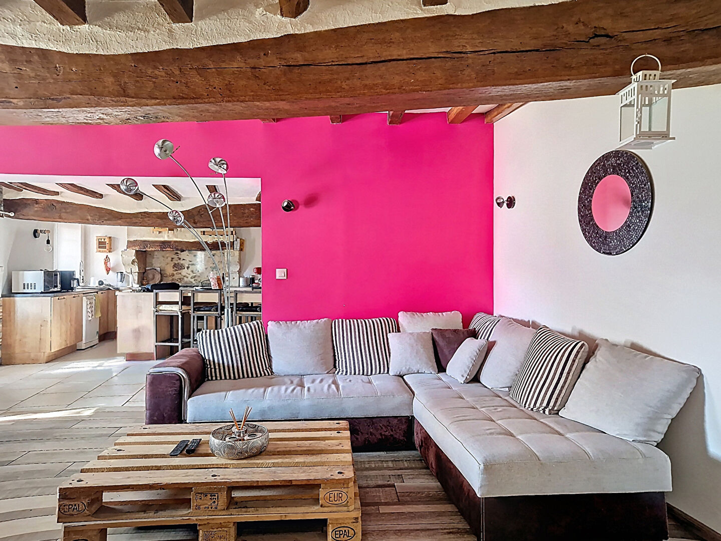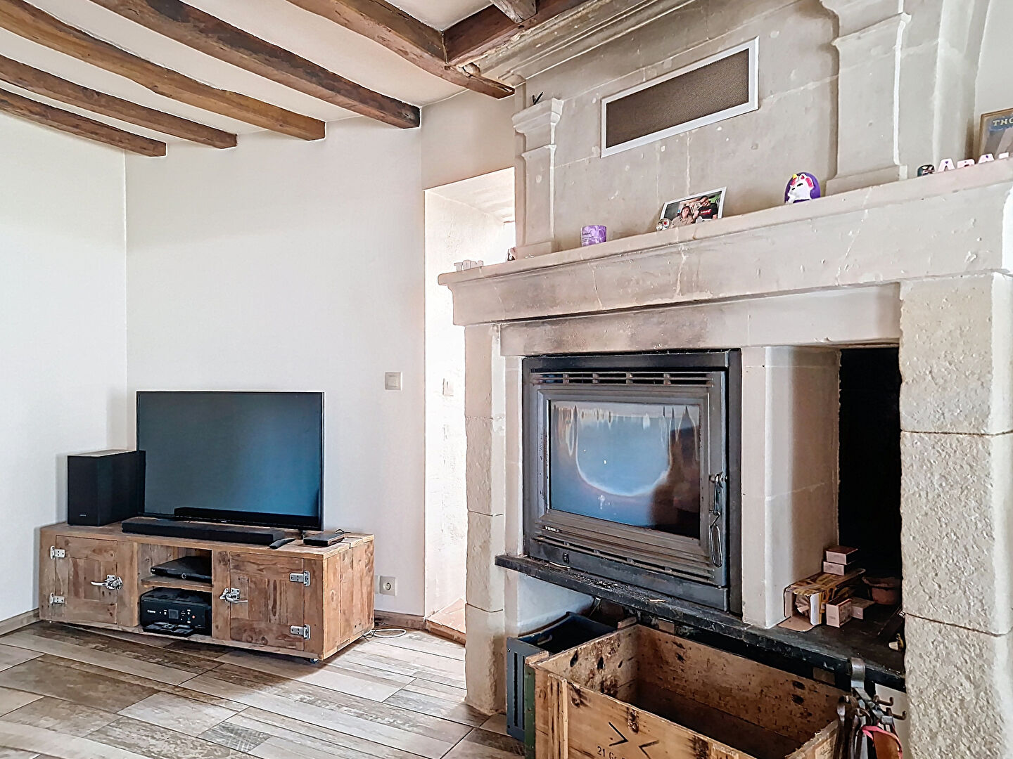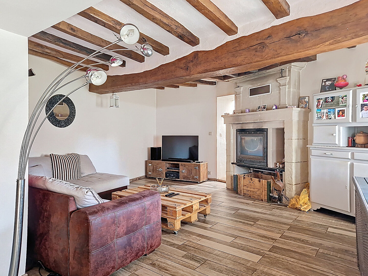 Dès l'entrée, vous découvrirez une belle cuisine aménagée et équipée, ouverte sur un salon/séjour avec insert, parfait pour partager des moments chaleureux en famille ou entre amis.