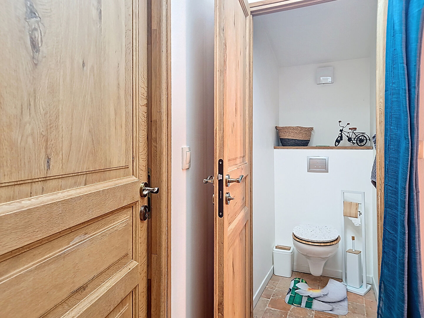 À l'étage, l'espace nuit se compose de deux chambres lumineuses et d'une salle d'eau avec WC, idéale pour accueillir famille ou invités.