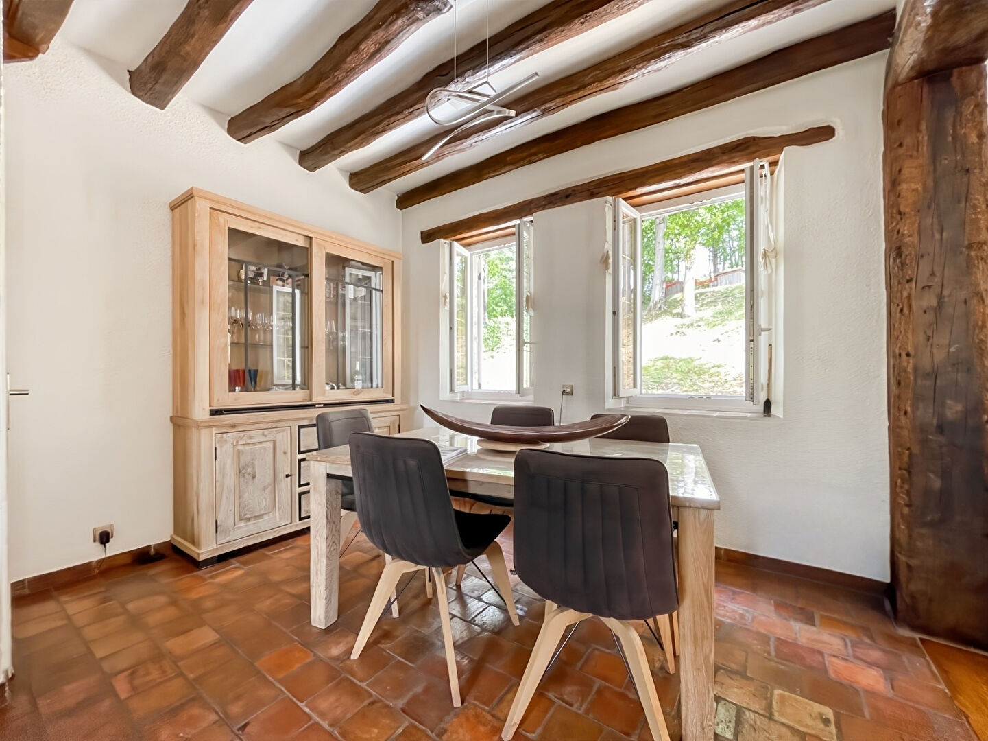 L'Adresse est ravie de vous proposer à la vente cette très belle maison individuelle dans une vallée protégée du sud-Essonne. Localisée à 20 minutes de Dourdan et 10 minutes d'Etampes, la maison est située dans un environnement naturelle et calme. Composée d'un mode de vie plain-pied, la maison offre de belles pièces de vie avec une vue imprenable sur la forêt et la vallée. Au rez-de-chaussée, vous trouverez une cuisine ouverte donnant accès sur la terrasse, un grand séjour avec plafond cathédrale et cheminée, 2 chambres, une salle de bains et un WC indépendant.