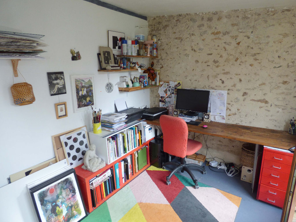 Belle pièce de vie avec poêle à bois, deux chambres, un bureau et un bureau indépendant (ou chambre d'amis). Jardin clos de murs.