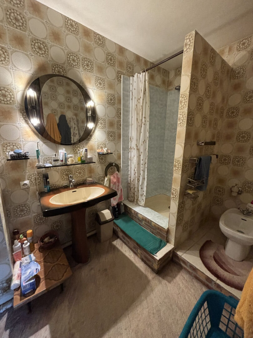 A l'étage : trois grandes chambres de 14 à 18 m2. Une seconde salle de bain et un WC indépendant. L'étage est complété par une chambre parentale (23m2) équipée d'une salle d'eau privative.