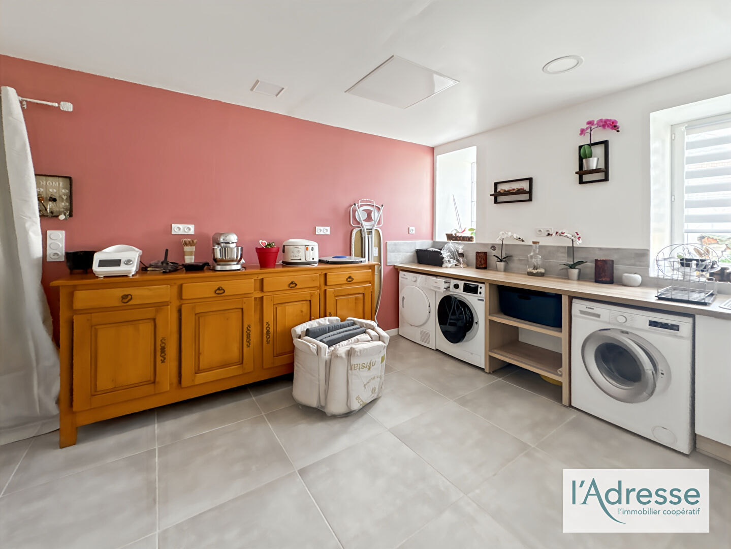 D'une superficie de plus de 210m², elle offre au rez de chaussée un immense séjour avec poêle à bois et cuisine ouverte neuve aménagée et équipée, d'une superficie totale d'environ 70m². Vous trouverez à ce niveau une grande buanderie, et une pièce de 20m² avec arrivée et évacuation d'eau pour créer une suite parentale avec WC et salle d'eau (possibilité de rendre le WC indépendant au besoin).