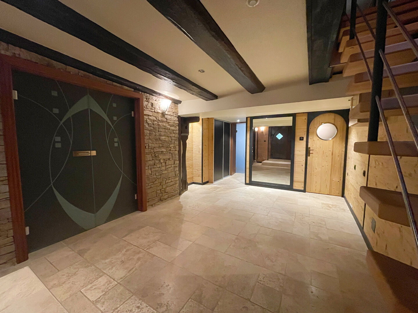 - Pièce avec pierre apparente.