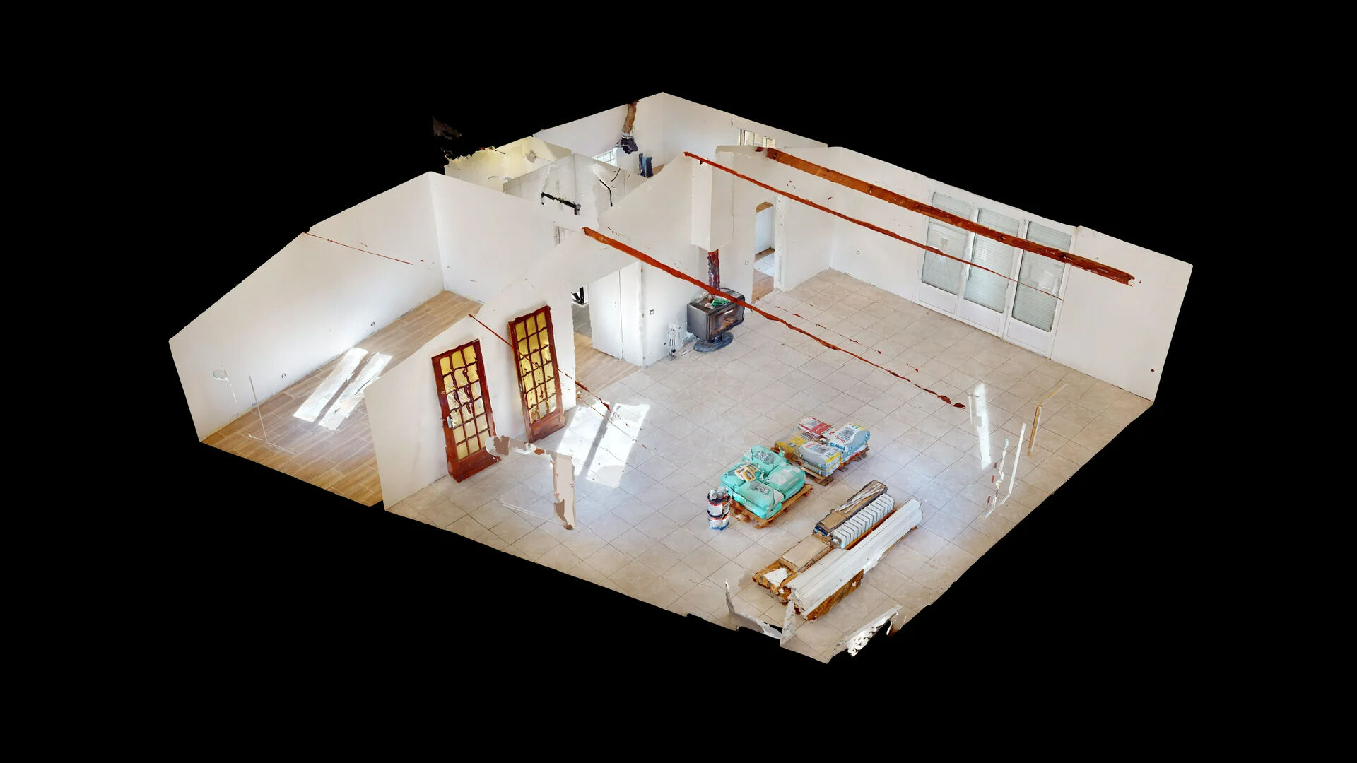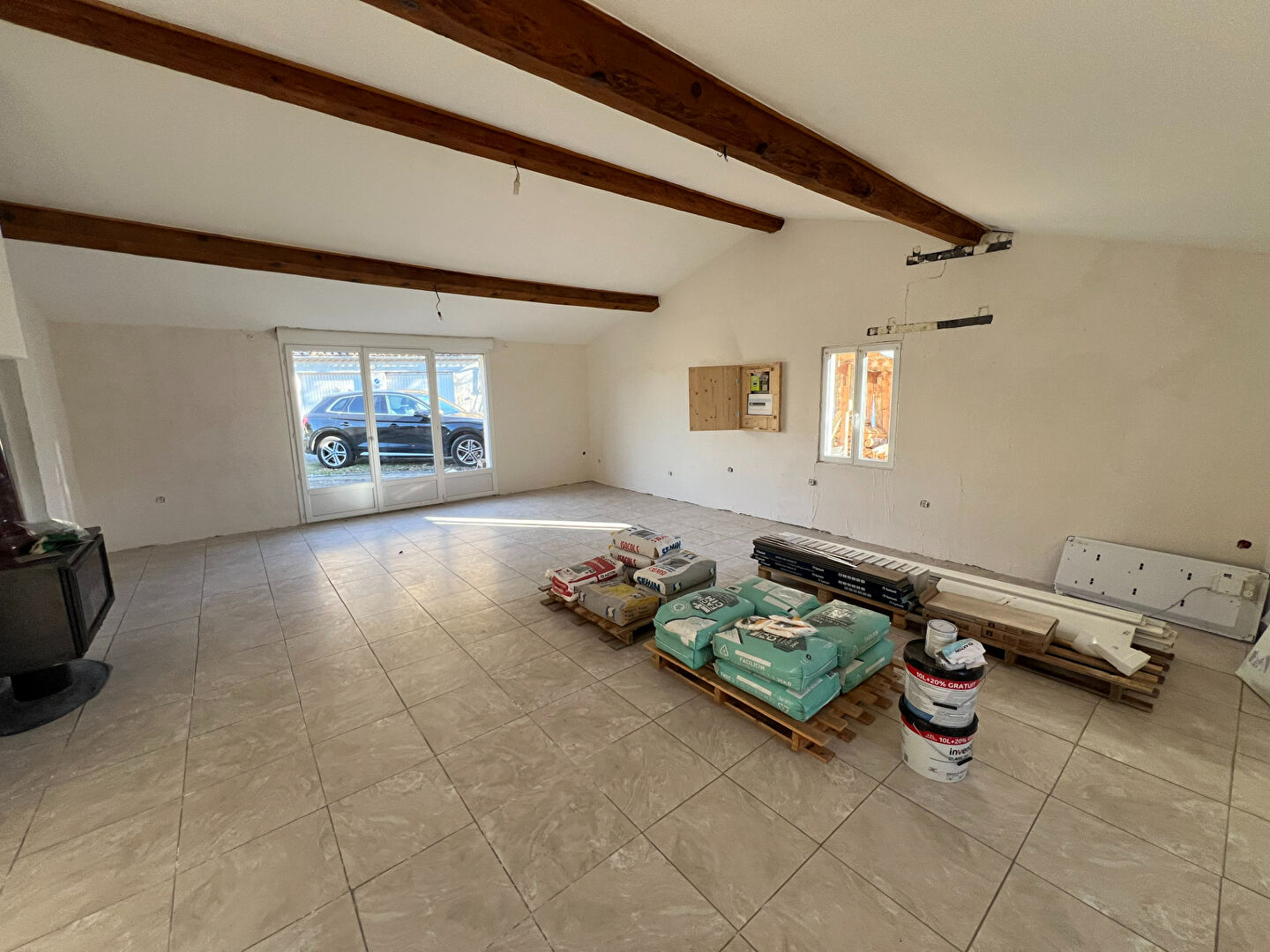 L'électricité à été mise en sécurité, les menuiseries remplacées, reste des travaux d'enduit et de peinture.