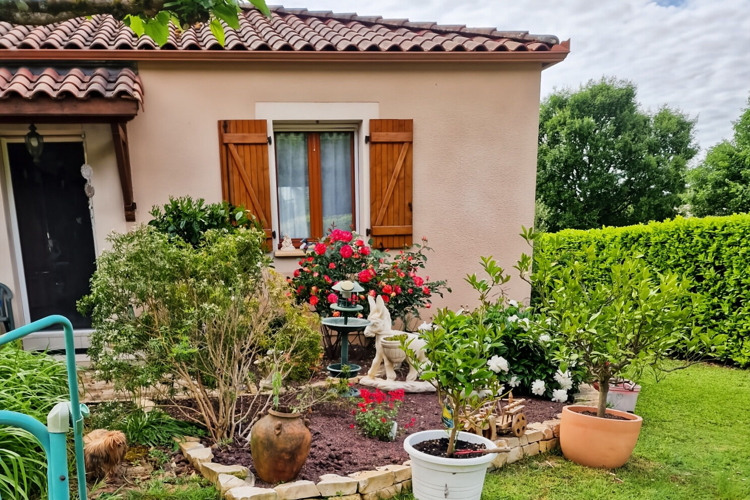 Joli jardin tout autour de la maison.