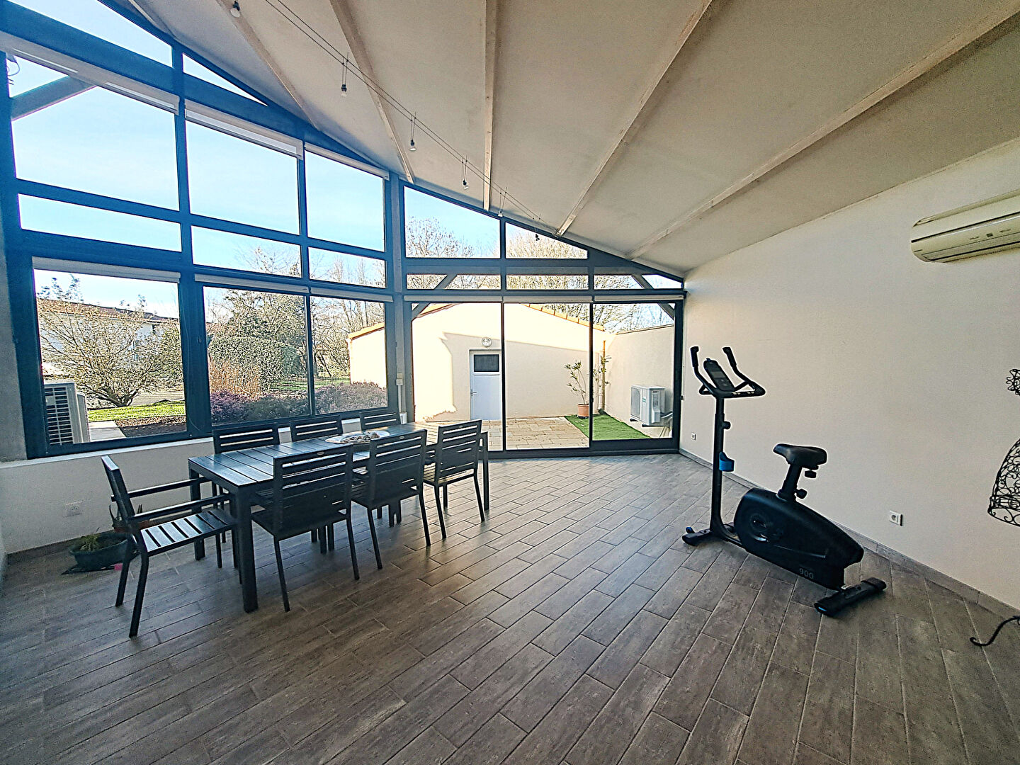 Vous bénéficiez également d'une grande extension pour des réceptions ou repas de famille équipée d'une climatisation, ainsi qu'une buanderie.