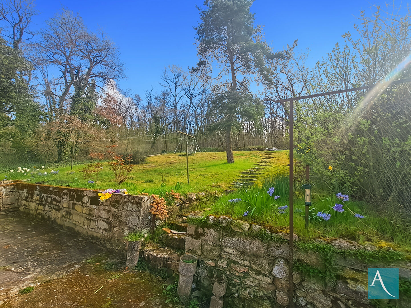 A l'extérieur un joli terrain clos et arboré de 1200 m² avec un garage, un poulailler et un WC.