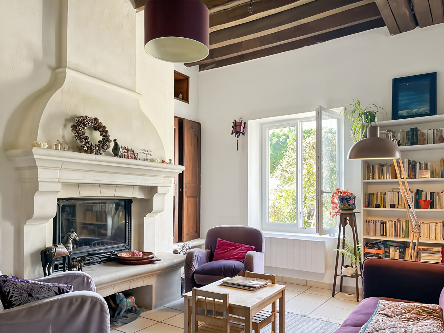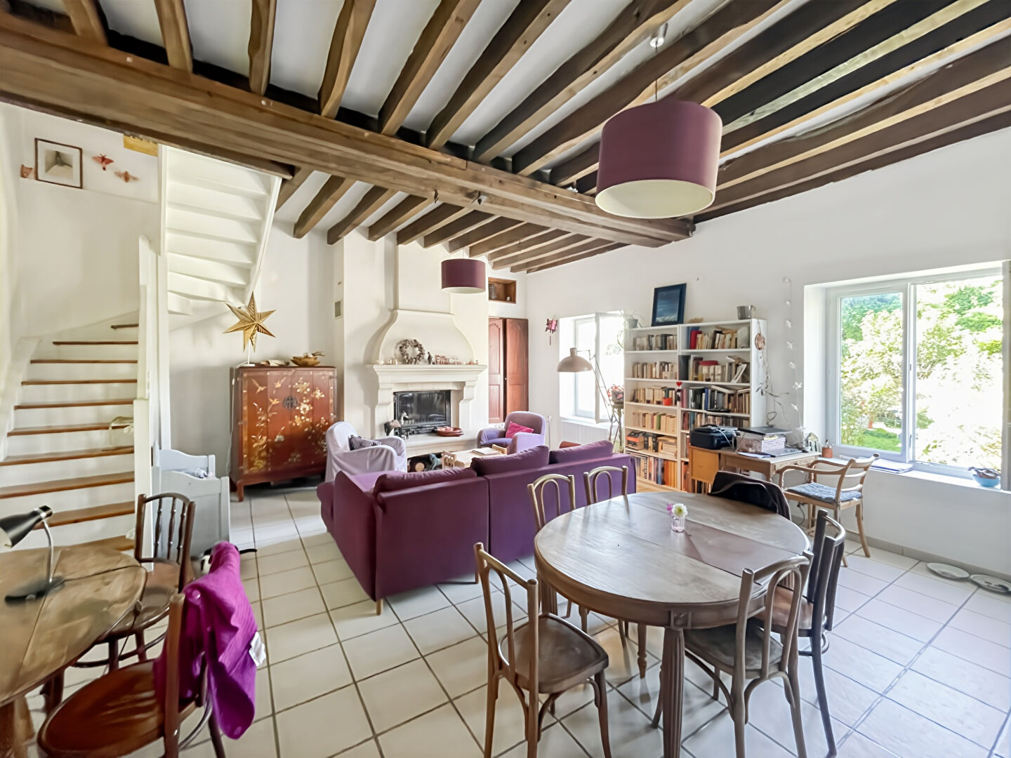 Vous serez séduit dès l'entrée par une belle pièce de vie de 50 m² avec sa hauteur sous plafond, sa cheminée ancienne fonctionnelle, ses poutres apparentes et sa cuisine ouverte aménagée. Un cellier pratique et un WC indépendant complètent le rez-de-chaussée.