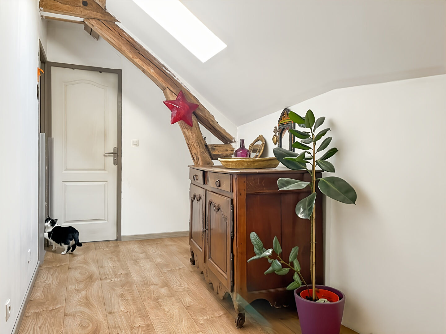 À l'étage, un palier dessert trois grandes chambres lumineuses ainsi qu'une salle de bains avec wc.