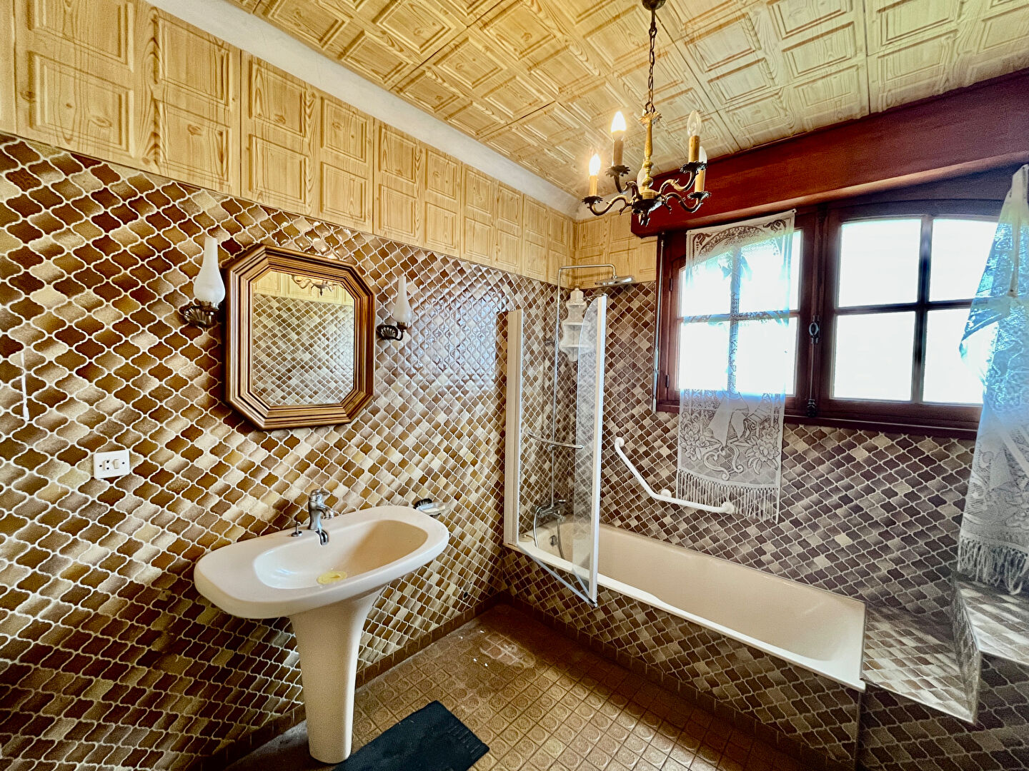 Elle se compose au rez de chaussée d'une entrée, salon séjour spacieux avec cheminée, une cuisine dinatoire, wc, une chambre et une salle de bains , à l'étage un palier desservant 5 chambres, une salle d'eau avec wc.