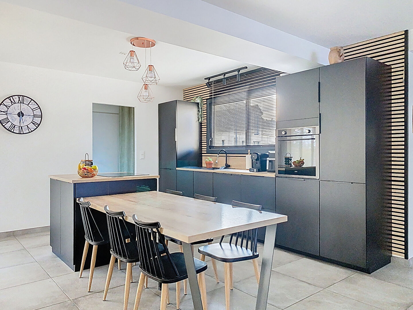 Dès l'entrée, vous découvrez un vaste espace de vie de plus de 55 m², comprenant une cuisine ouverte sur un salon/séjour lumineux, agrémenté d'un poêle à granulés, véritable avantage en matière de confort thermique et de maîtrise énergétique.