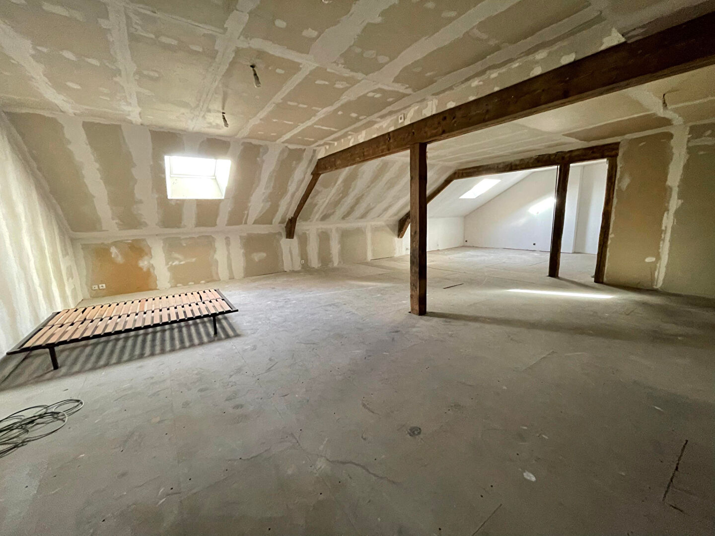 Grande pièce principale de 129 m² avec poêle à bois - Cuisine - 3 chambres- Salle de bains avec wc - A l'étage : Grande pièce , deux bureaux.