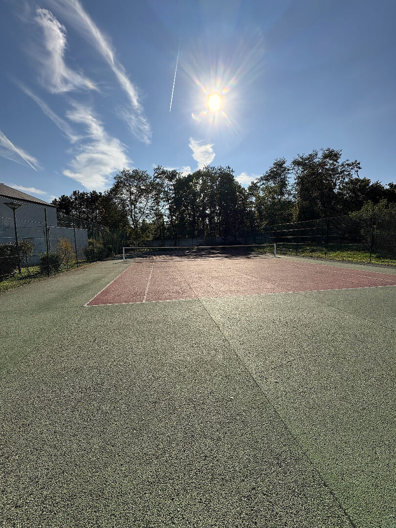Pour les amateurs, un terrain de tennis est à disposition dans cette copropriété.