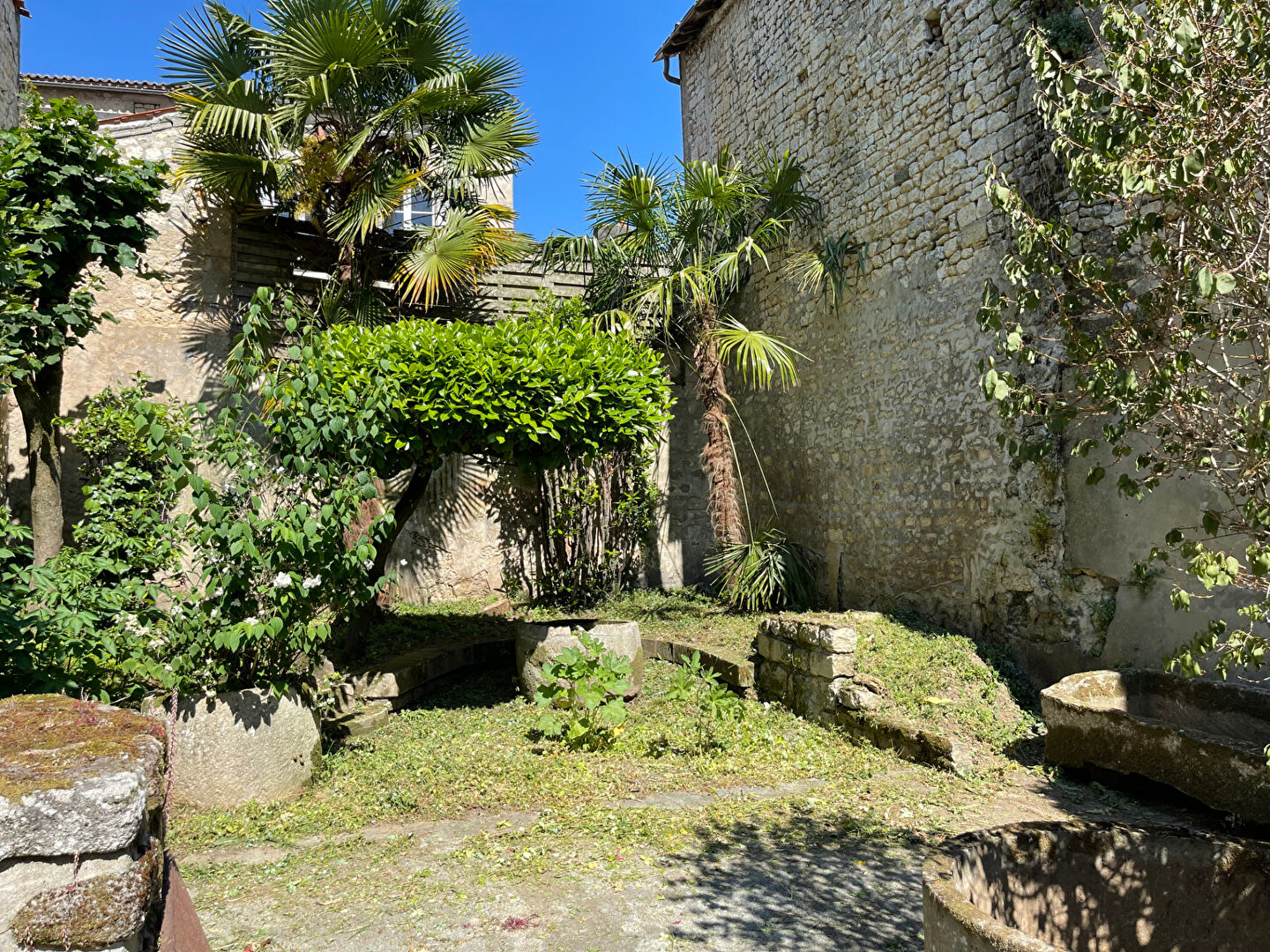 Une agréable cour arboré de 90m² ainsi qu'une belle cave voutée complètent le tout.