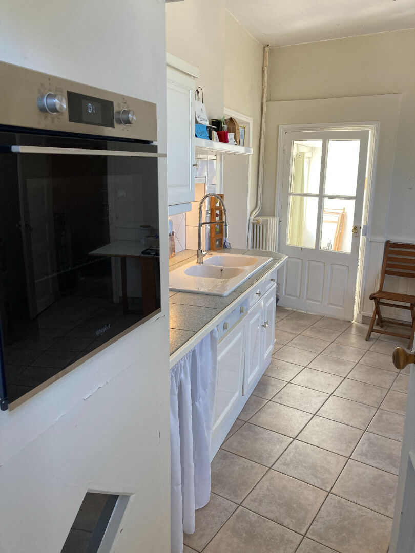 Pièces de vie lumineuses avec éléments anciens conservés, cuisine indépendante aménagée et équipée, 3 chambres spacieuses + 1 bureau.