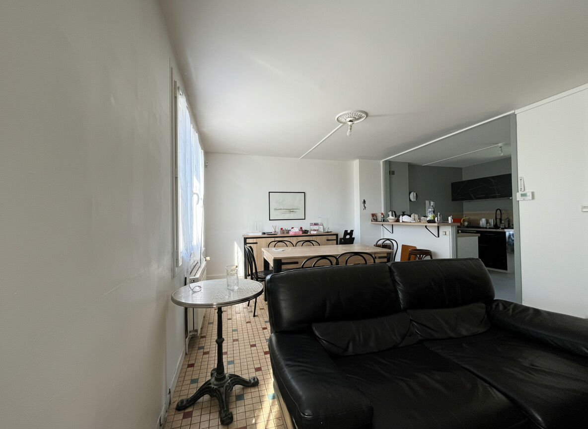 Au premier étage : une entrée, un séjour lumineux avec cuisine ouverte récente et un WC indépendant.