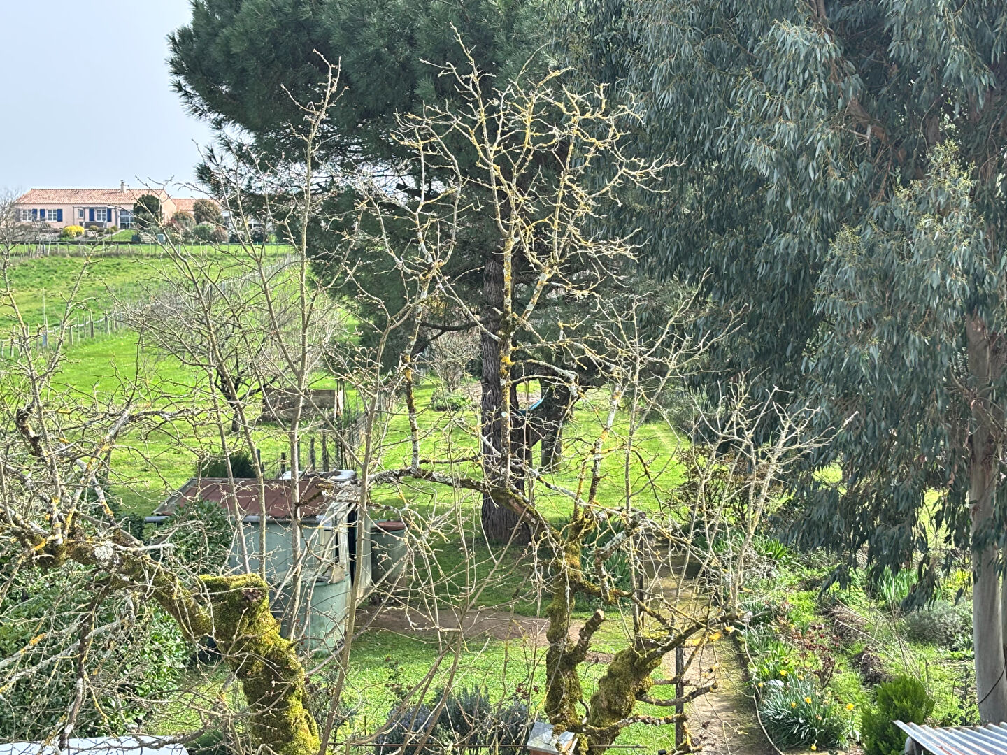 Jardin avec arbres fruitiers et un bel espace pour le potager.