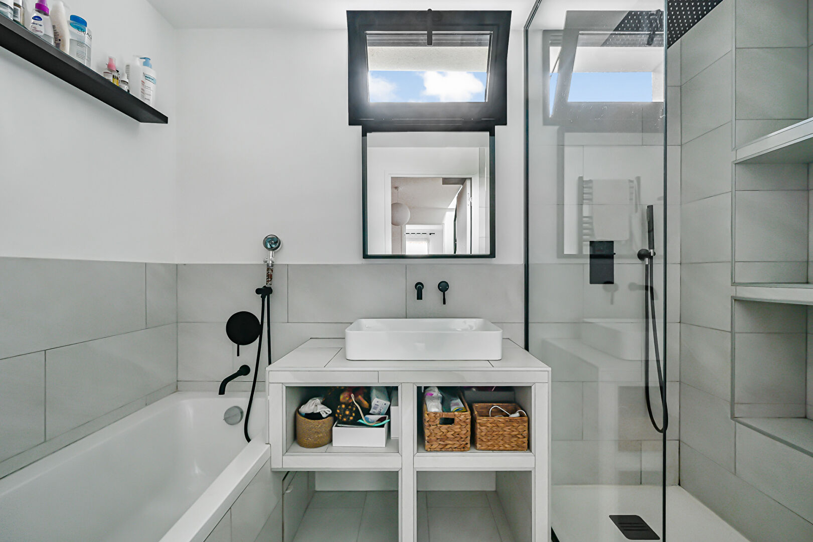 A 9 minutes de l'école Jules Ferry, dans une charmante villa privée au calme absolu, maison d'architecte non mitoyenne, construite en 2021 comprenant un espace de vie avec séjour - salle à manger (hauteur sous-plafond 3.20 m), cuisine, rangements.