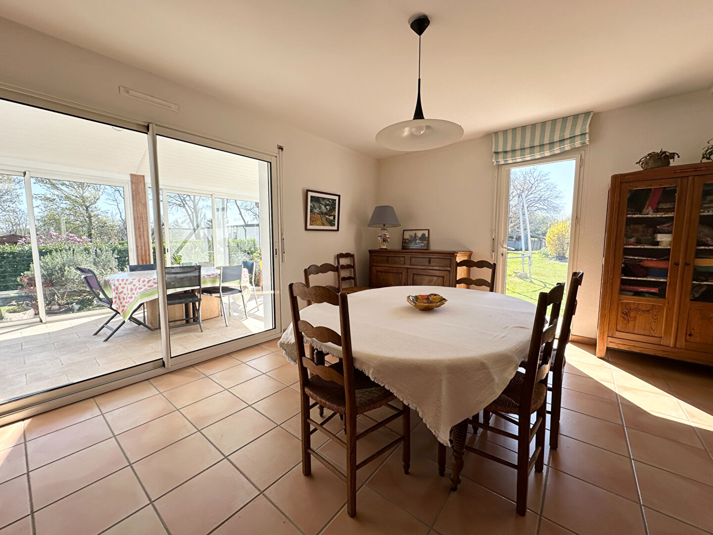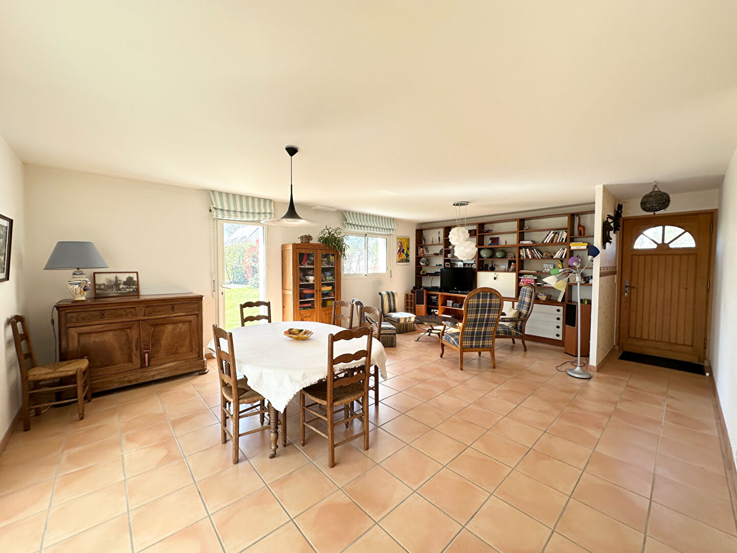 Le salon séjour s'ouvre sur une grande et jolie véranda.
