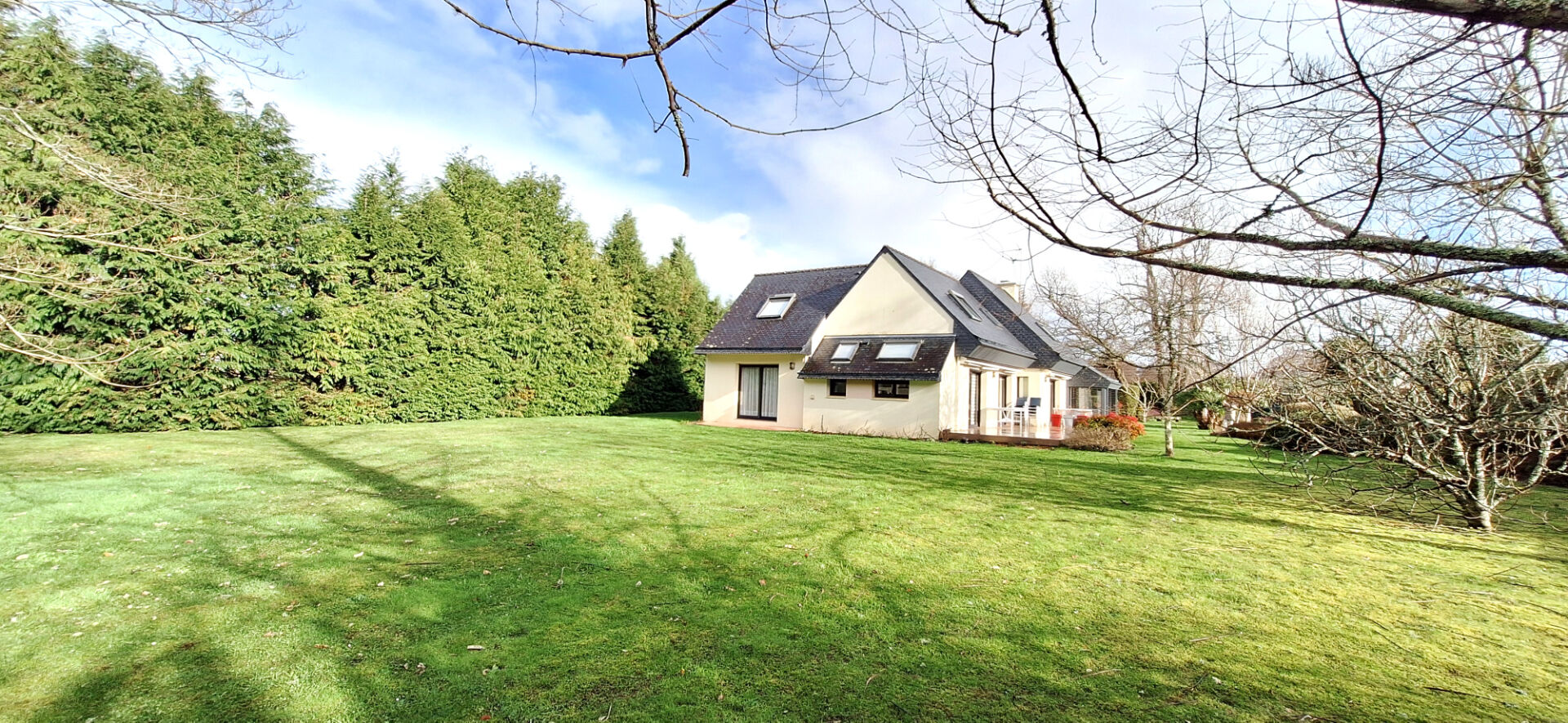 Cette très belle maison de 1997 séduit par ses volumes, sa luminosité et son jardin de plus de 3000 m² paysagé.