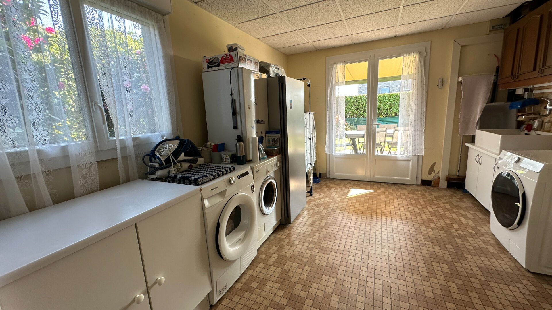 Fouesnant, côté Beg-Meil - Dans un environnement privilégié, sans vis-à-vis, venez découvrir cette jolie maison de 171m² habitables, sur un joli terrain arboré et paysagé de 930 m². Elle se compose d'une entrée, d'une cuisine, un salon séjour, une chambre, une salle d'eau, une grande buanderie et un wc séparé.