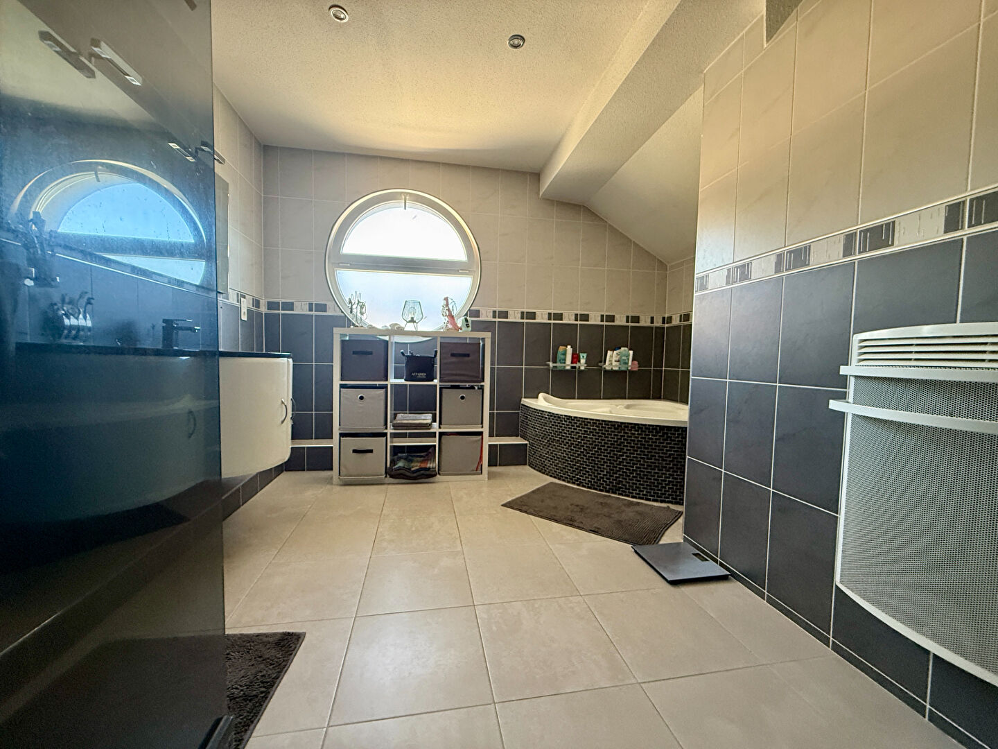Un dégagement lumineux avec poêle à granulés, un toilette, une salle de sport, une chambre, un bureau, une deuxième chambre, une salle de bain ainsi que deux chambres disposant chacune de leur propre salle d'eau.
