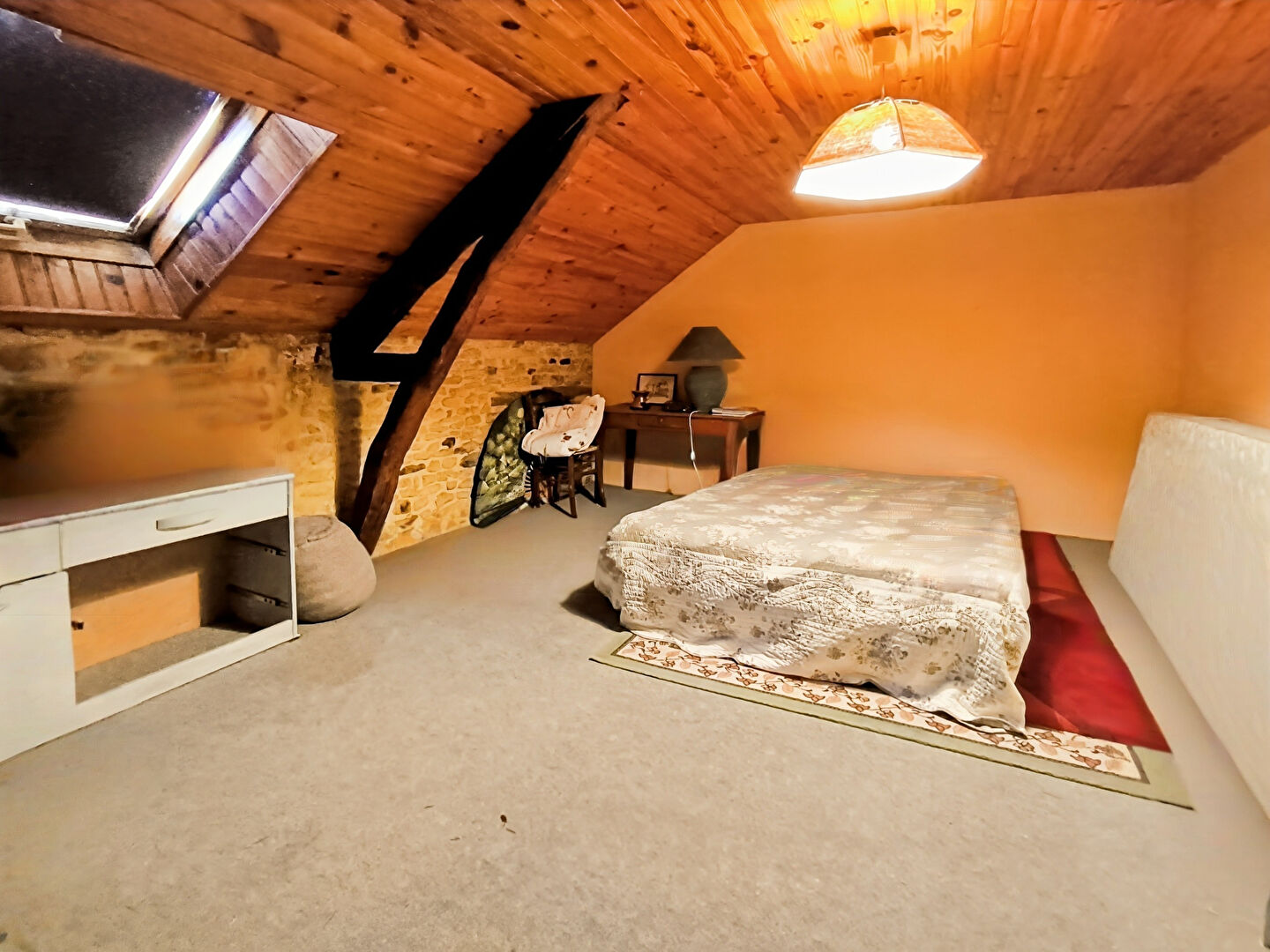 Au calme d'un petit hameau, cette propriété en pierre avec vue dégagée et piscine présente une maison de +-130m², une maison d'amis et une très spacieuse grange (268m²) autour d'une cour intérieure. Ses multiples parcelles sur 5ha seront utiles aux propriétaires équestres ou projets agricoles divers. Accessible par un joli bolet, la maison présente un hall avec wc, cuisine entièrement équipée, séjour, lumineuse véranda, salle d'eau, 4 chambres et un grenier facilement aménageable. Equipements de qualité: double vitrage alu récents, volets solaires et stores extérieurs, PAC et ballon thermodynamique, panneaux photovoltaïques sans revente = grand confort très peu énergivore.