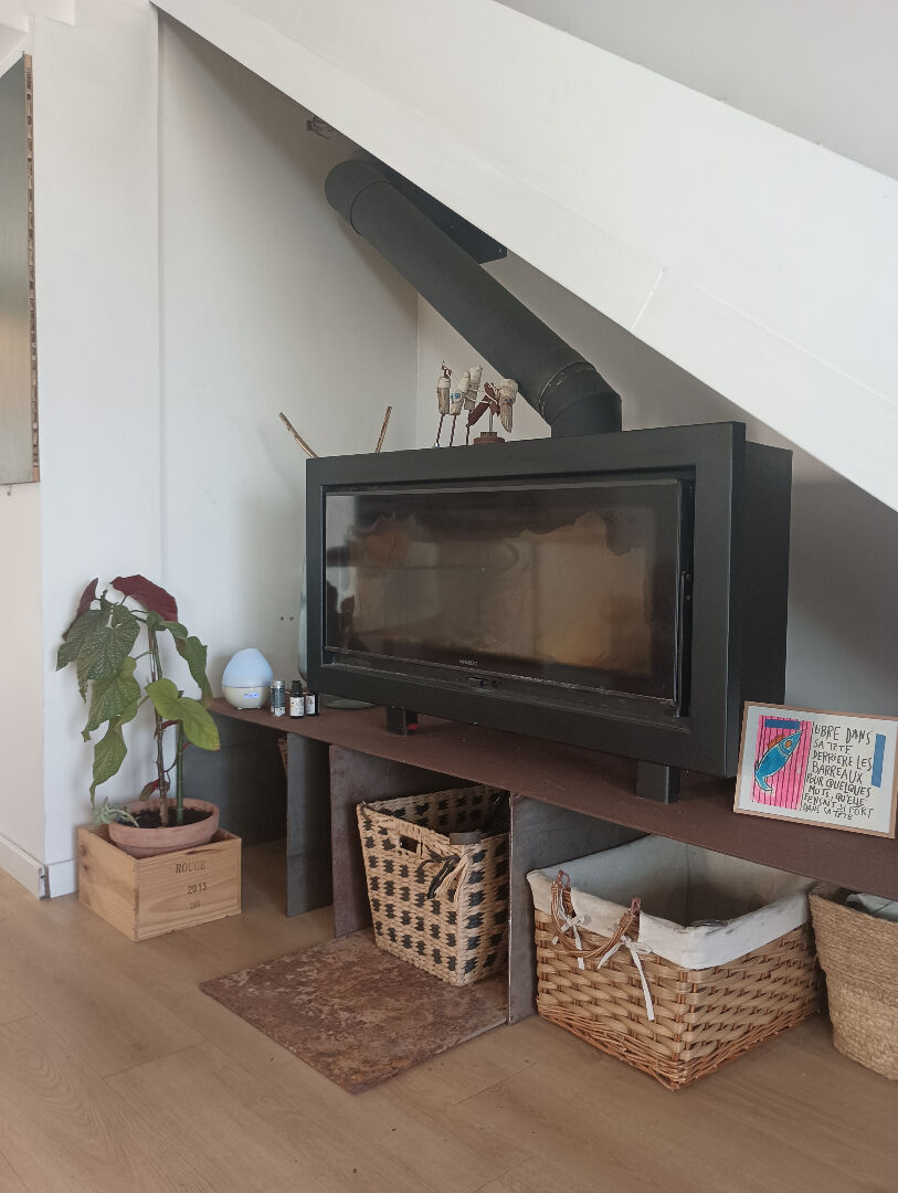 Elle est composée d'une cuisine équipée ouverte sur un salon/séjour climatisé, avec poêle à bois et poêle à granules, d'un WC et d'une chambre.