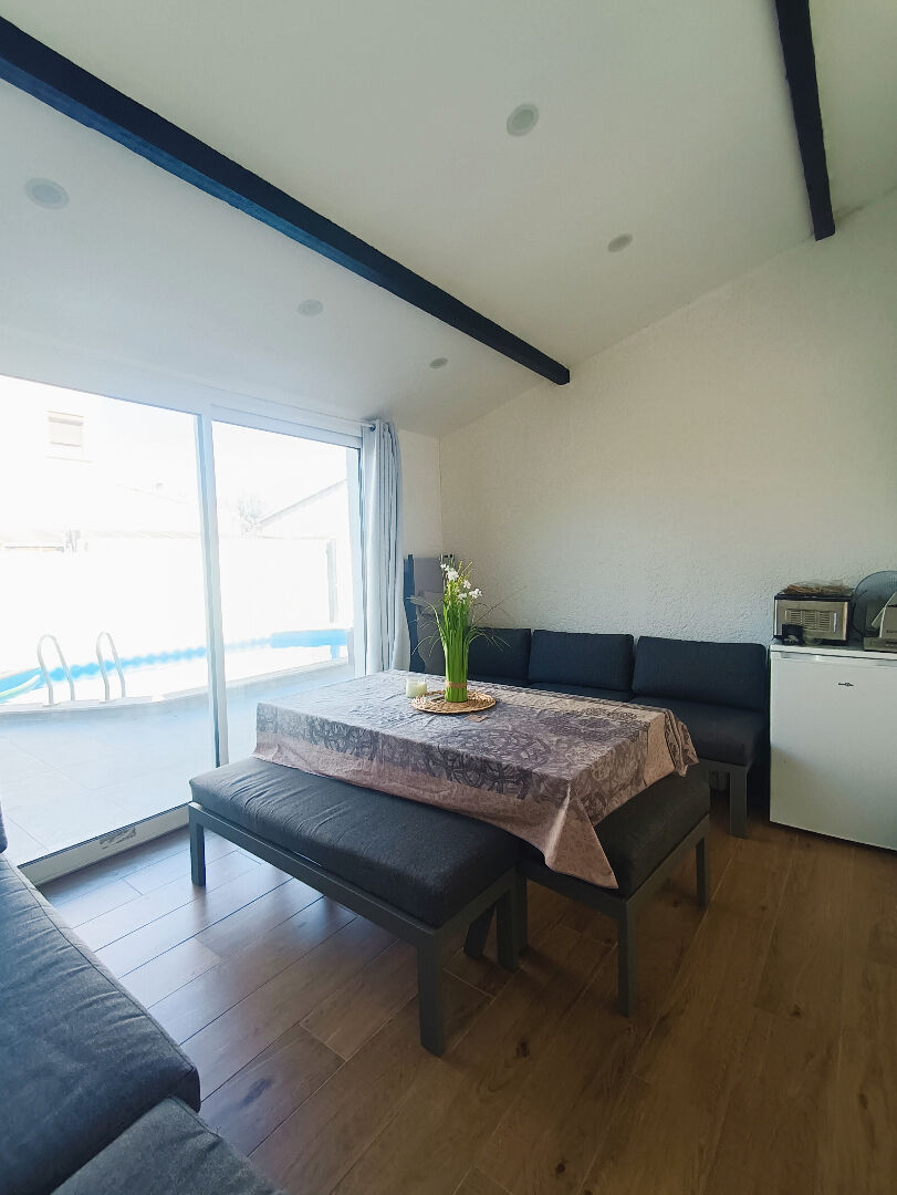 Côté extérieur, un jardin avec gazon synthétique, terrasse, piscine, douche... idéal pour recevoir ! Vous n'avez plus qu'a poser vos valises !