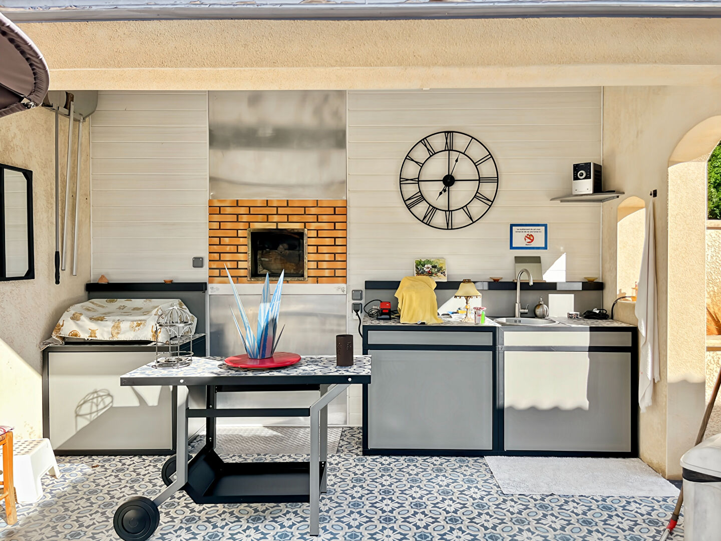Vous profiterez d'un jardin entièrement clôturé, d'une piscine 10x5 au sel, une cuisine d'été avec barbecue en pierre, d'un terrain de pétanque, et d'un garage spacieux de près de 60 m².