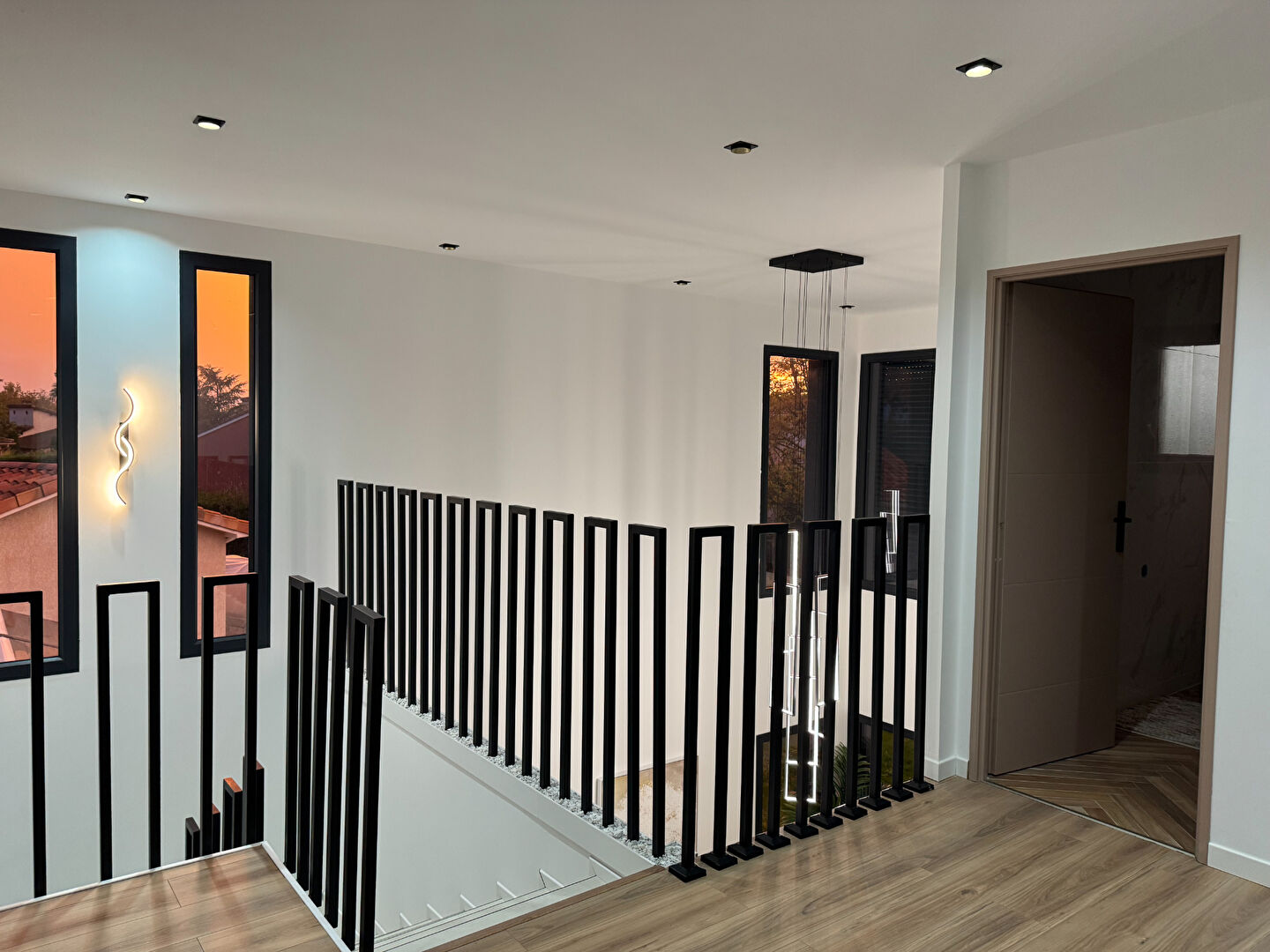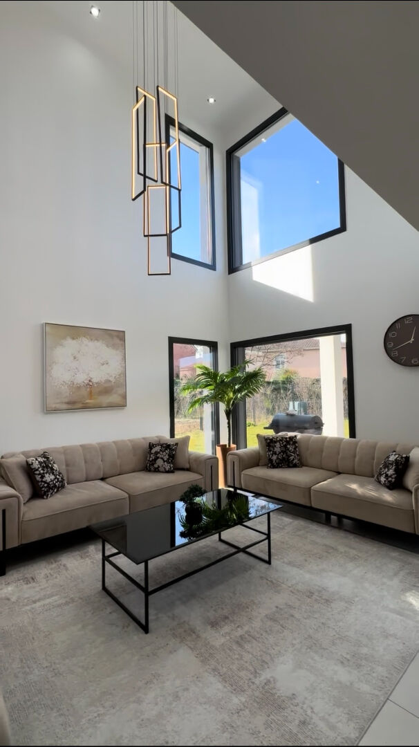 Elle se compose d'une grande pièce de vie lumineuse avec une belle hauteur sous plafond, d'une cuisine ouverte, de 4 chambres dont une suite parentale, d'un bureau, et de 2 autres salles d'eau.