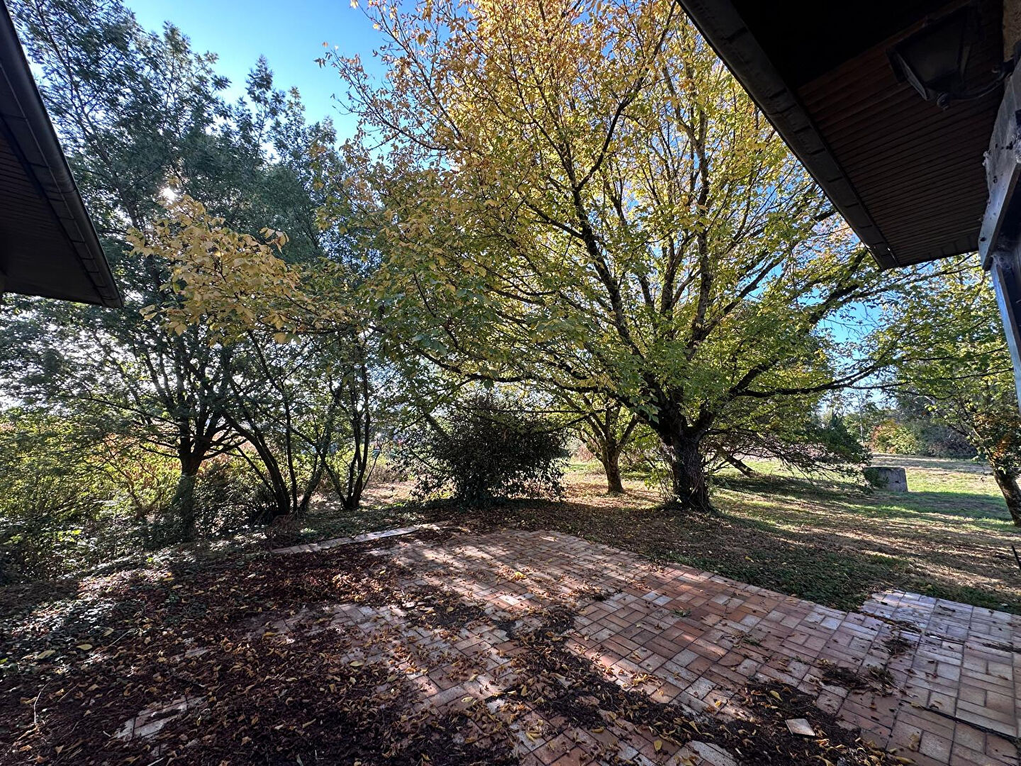 À l'extérieur, de magnifiques arbres centenaires offrent un cadre verdoyant et paisible.