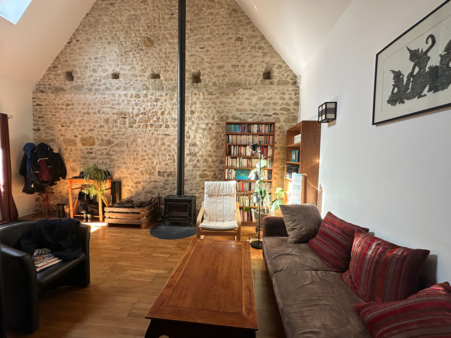 Avec ses 93 m² habitables, cette maison conjugue authenticité et confort moderne. Le séjour avec son plafond cathédrale et son poêle à bois crée une atmosphère chaleureuse et conviviale. La salle à manger avec ses tomettes anciennes et la cuisine aménagée et équipée complètent agréablement le rez-de-chaussée. Vous y trouverez également une salle d'eau avec WC.