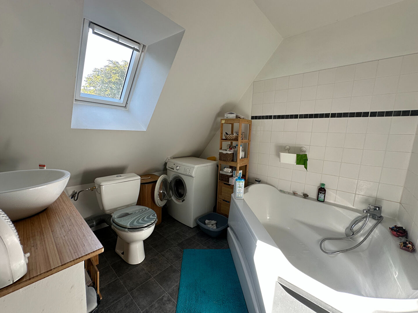 L'espace nuit à l'étage comprend deux chambres et une salle de bains avec WC.