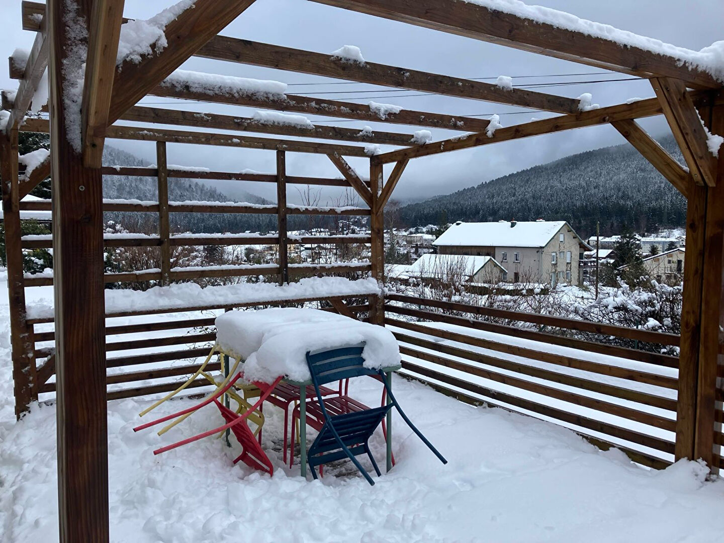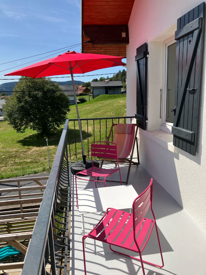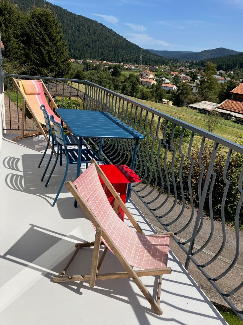 Le grand balcon vous convie à des moments de farniente en transat et à des repas conviviaux face aux reliefs vosgiens.