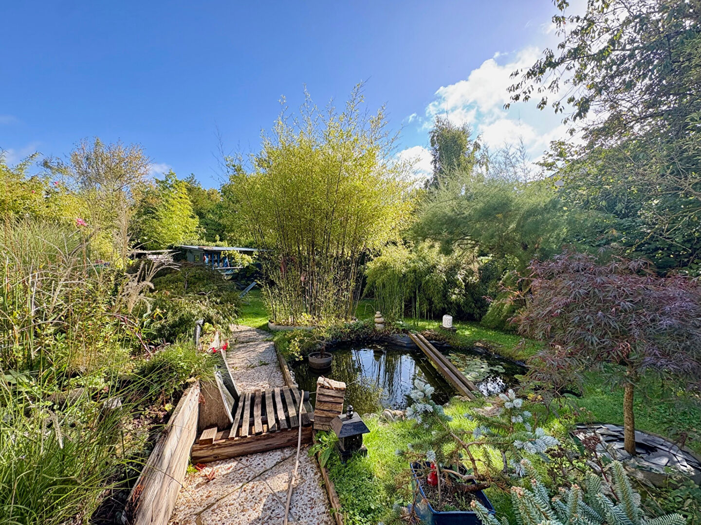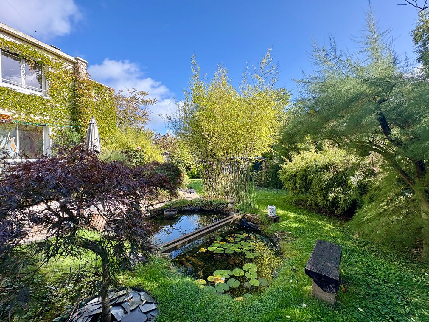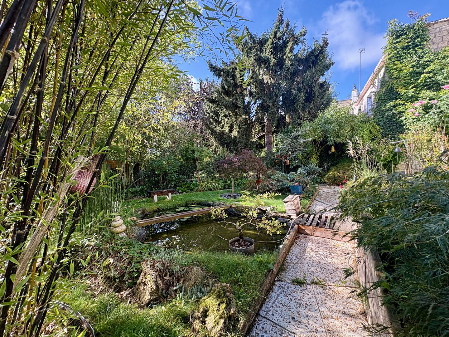 Le tout est édifié sur un magnifique terrain arboré et paysagé d'inspiration jardin japonais, véritable écrin de verdure, sans vis à vis.