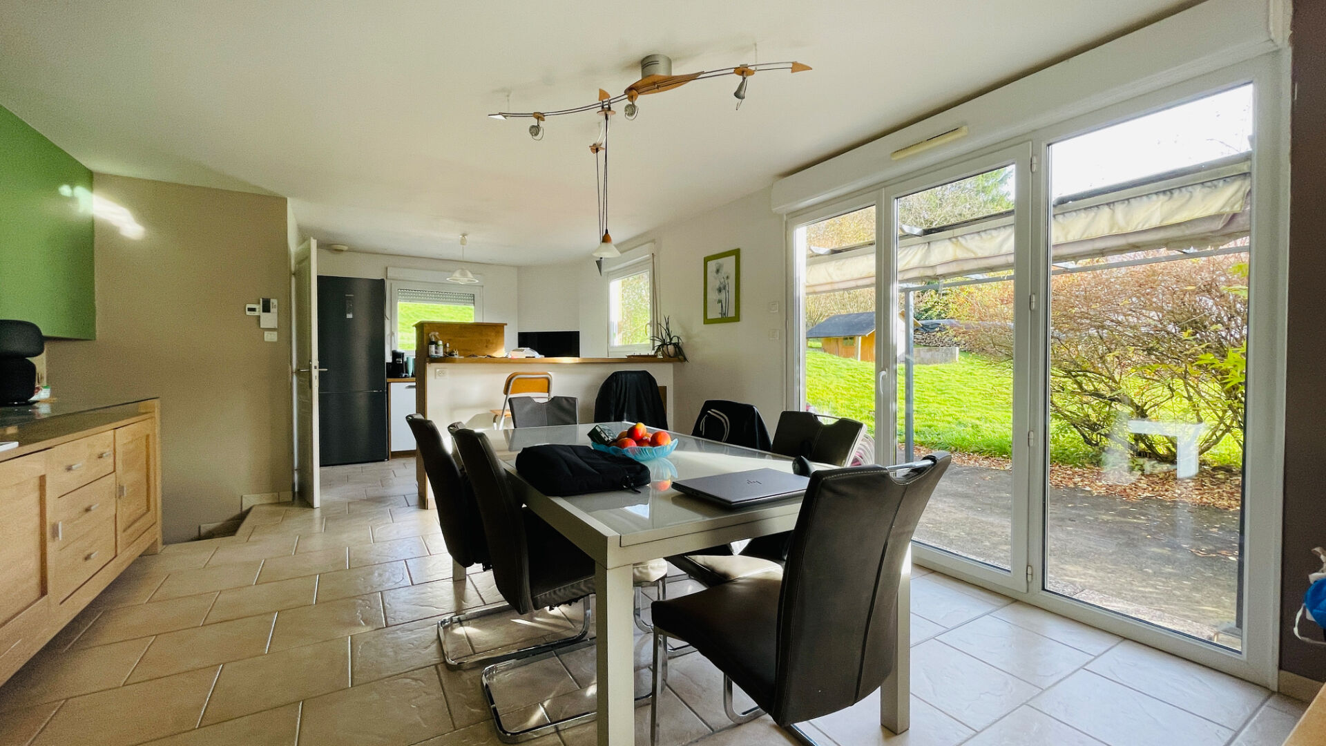 Charmante et agréable maison à ossature bois (construction 2006) comprenant une entrée avec vestiaire, séjour ouvert sur la cuisine équipée et accès terrasse. Un poêle à bois TUKIVILI complète le système de chauffage (plafond chauffant), ballon thermodynamique de 2025, un cellier, une buanderie, WC et un accès garage : l'ensemble en RDC .