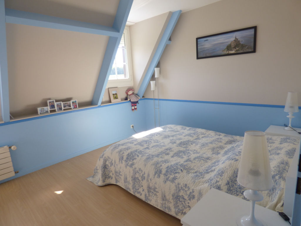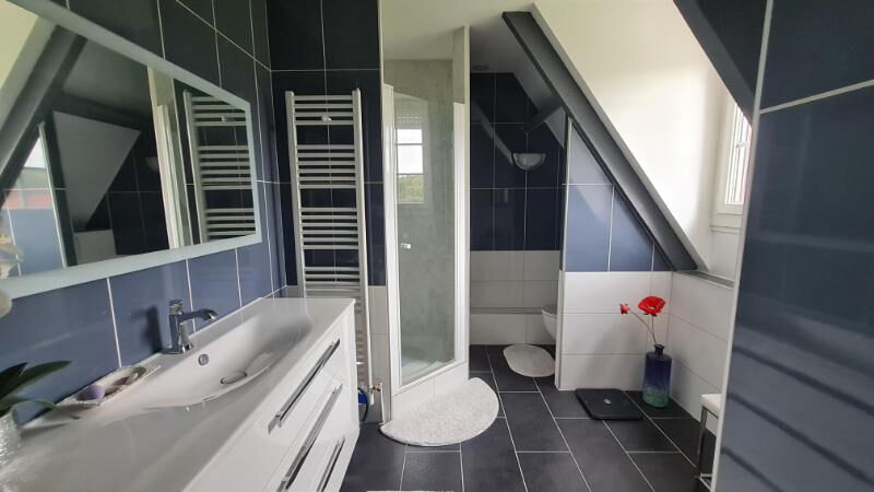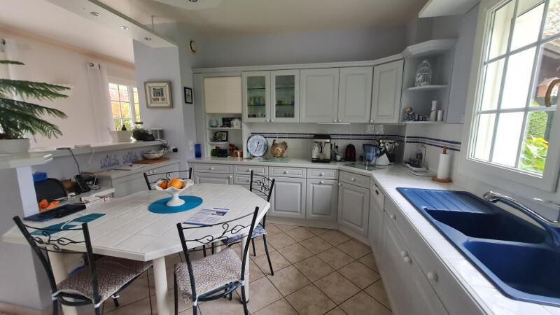 Très lumineuse et avec de beaux volumes, elle se compose au rez de chaussée d'une belle entrée ouverte sur une cuisine aménagée équipée et sur une pièce de vie de plus de 65m², une chambre, une salle d'eau et wc et à l'étage, un vaste palier, une suite parentale avec salle d'eau et dressing, 2 chambres , une salle de bains et wc.
