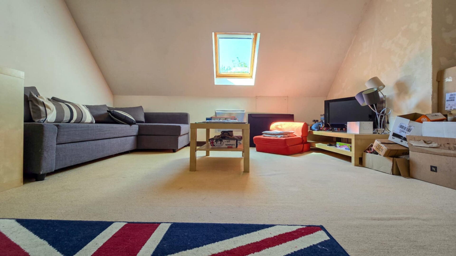 A l'étage un grand palier/bureau desservant deux très grandes chambres.
