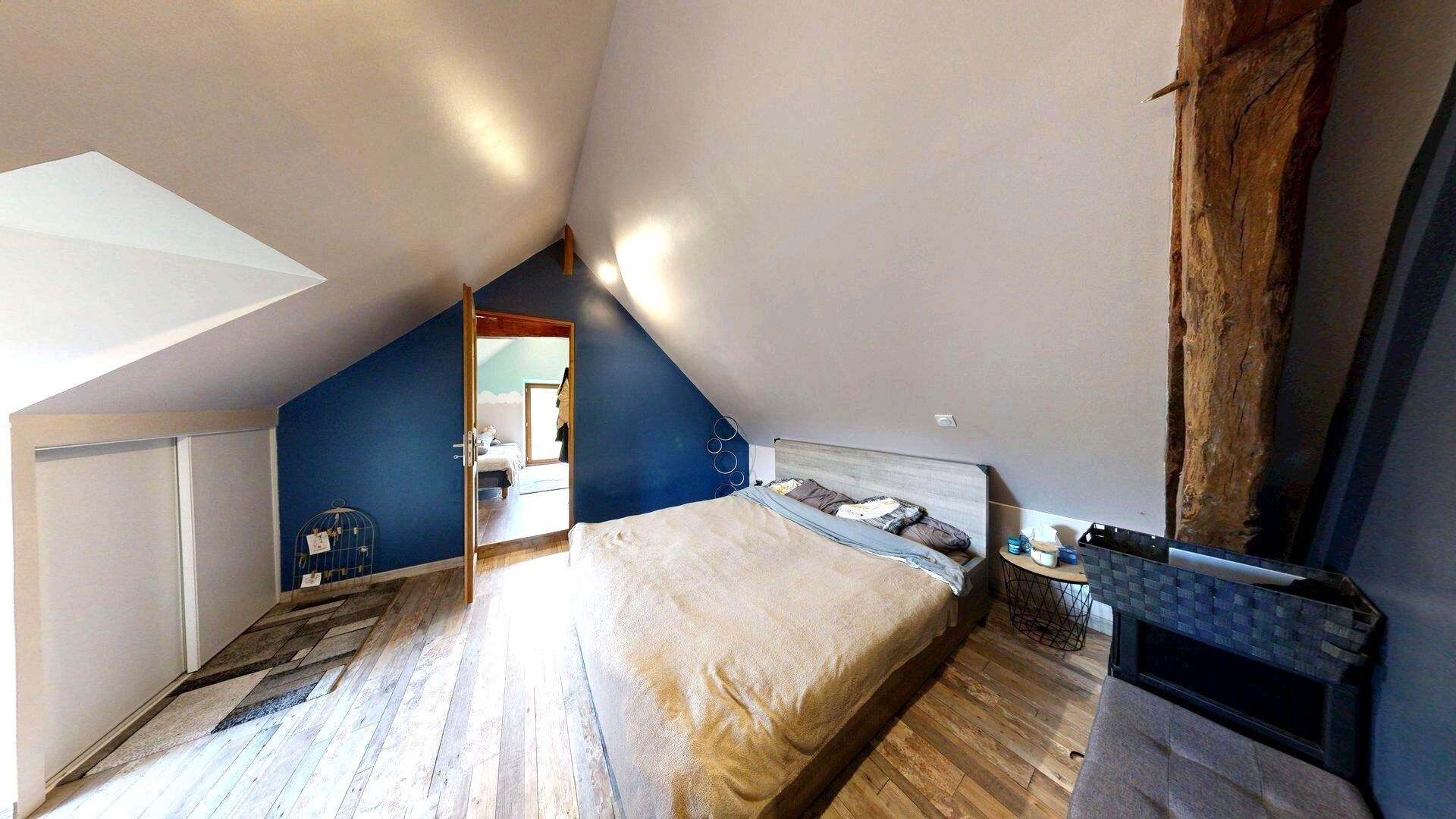 Composée d'une belle pièce de vie avec cuisine équipée et poêle à granulés, une salle de bains, une buanderie et un WC.