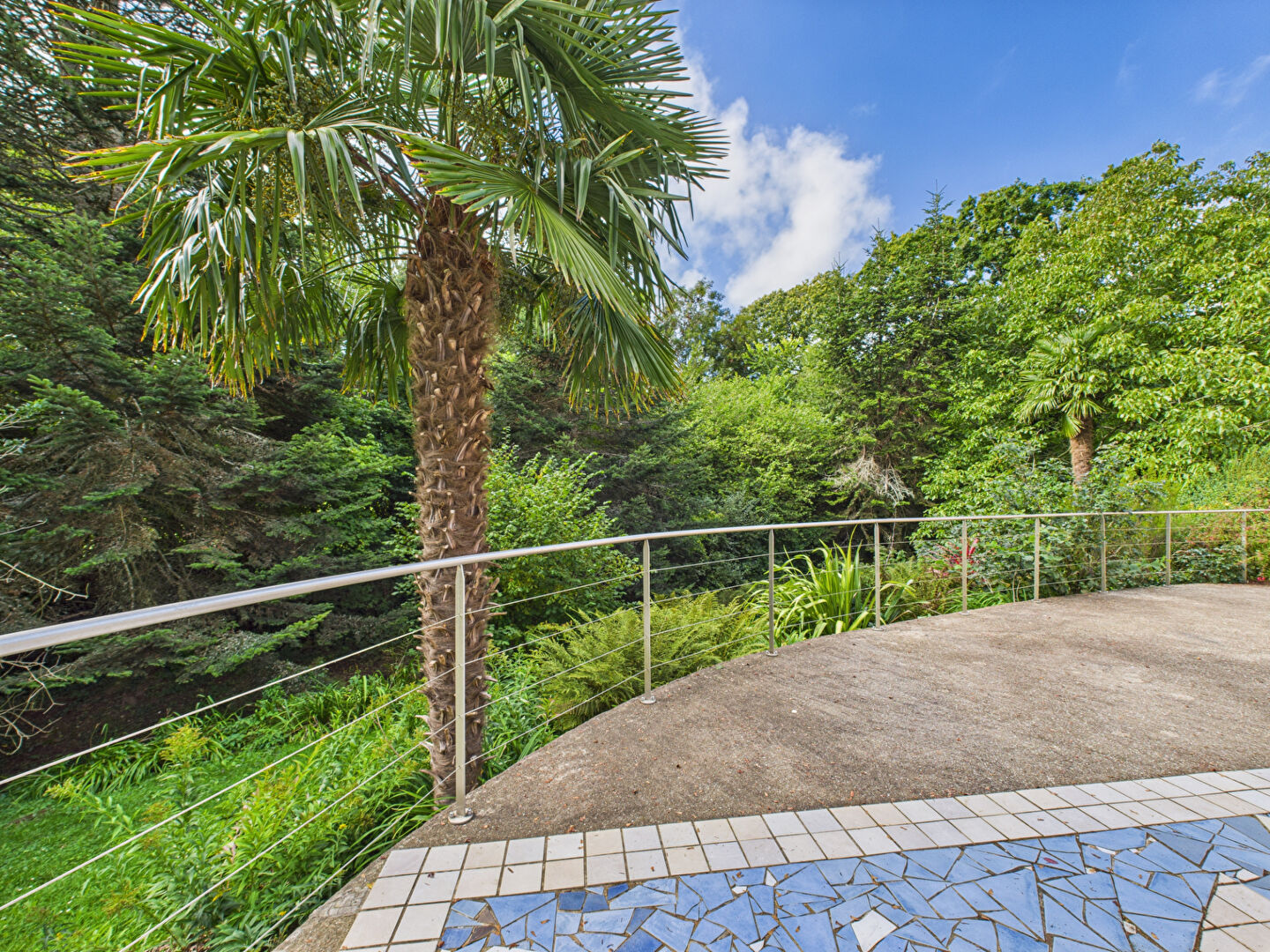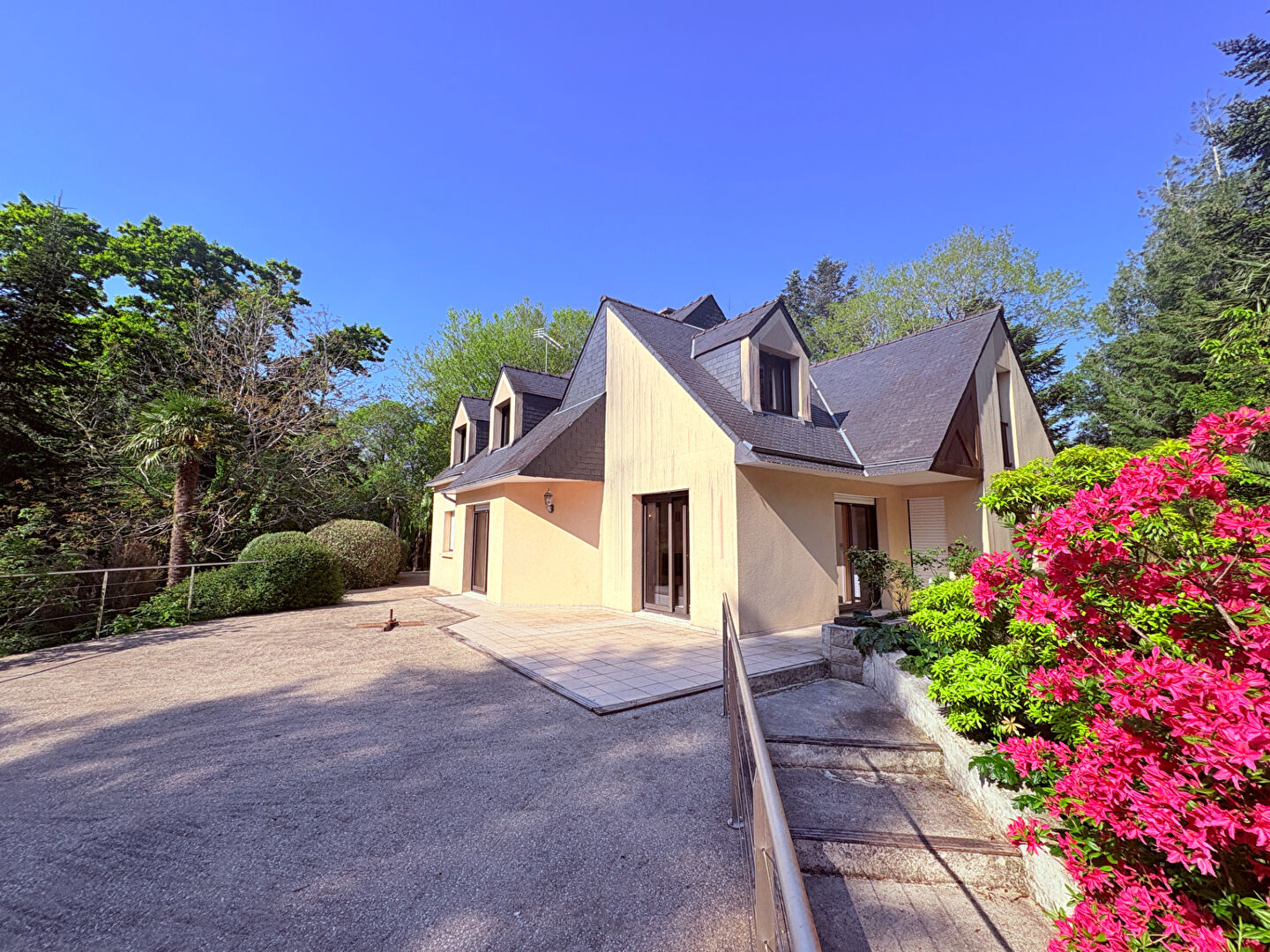 Située dans un environnement calme et verdoyant, cette jolie maison des années 90, sans vis-à-vis, bénéficie d'un cadre idyllique entre terre et mer. Édifiée sur un terrain arboré de 3850 m², elle offre une belle surface habitable de 190 m² répartis sur trois niveaux. À moins de 10 minutes des plages de Bénodet, c'est un véritable havre de paix.