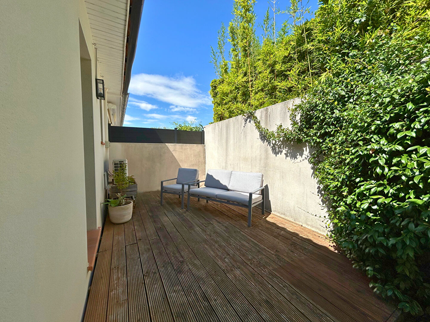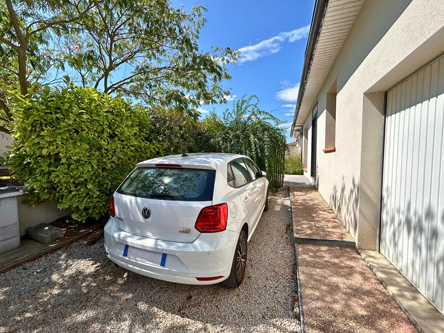 À l'extérieur, un portail permet l'accès à une place de stationnement privative de 31 m², suivie d'une spacieuse terrasse carrelée exposée SUD de 28 m², parfaite pour recevoir.