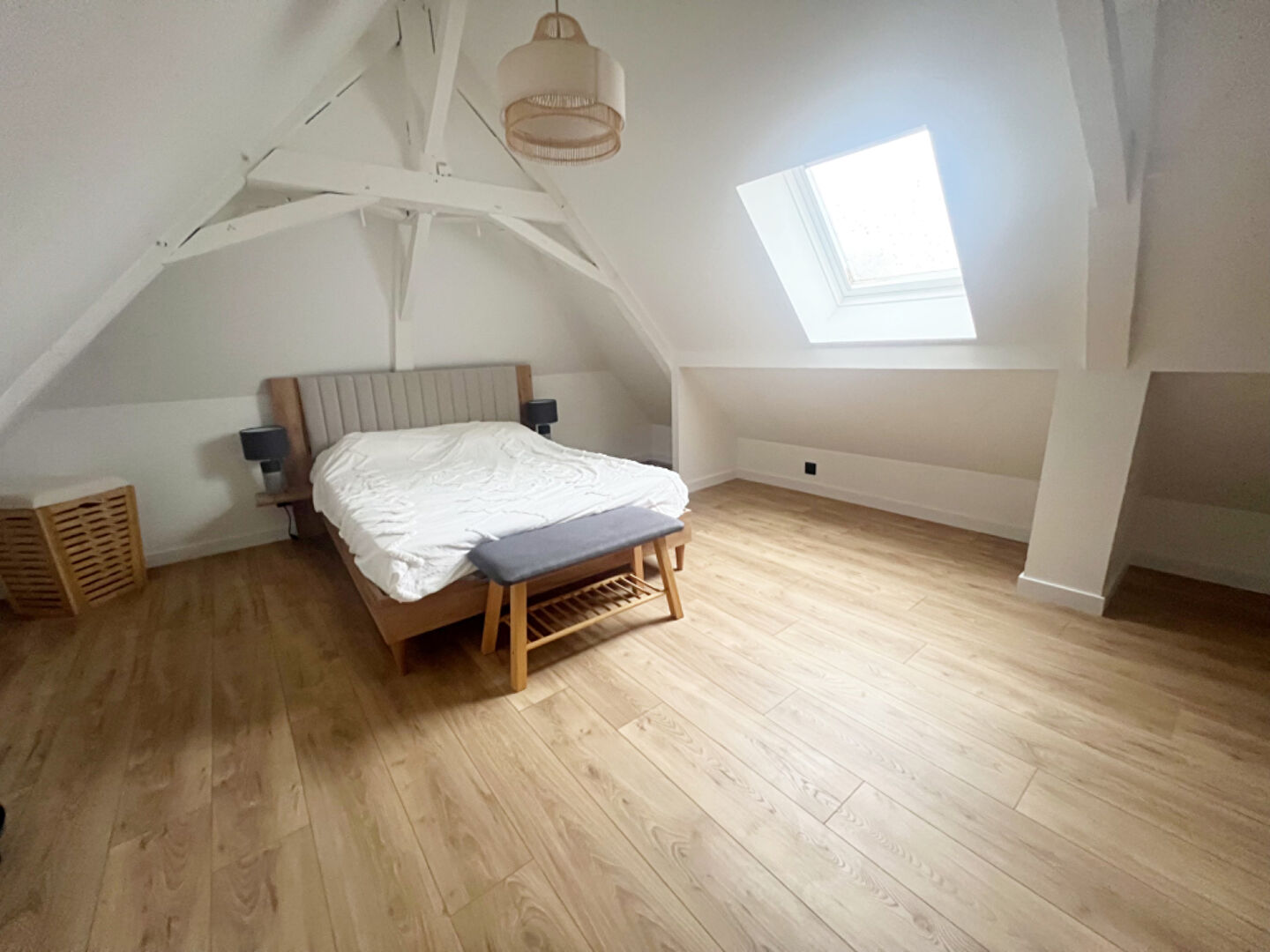 Le deuxième étage propose un espace plein de potentiel avec une grande mezzanine, idéale pour un bureau, un coin lecture, une salle de jeu ou une chambre, ainsi qu'une grande chambre de 30 m².