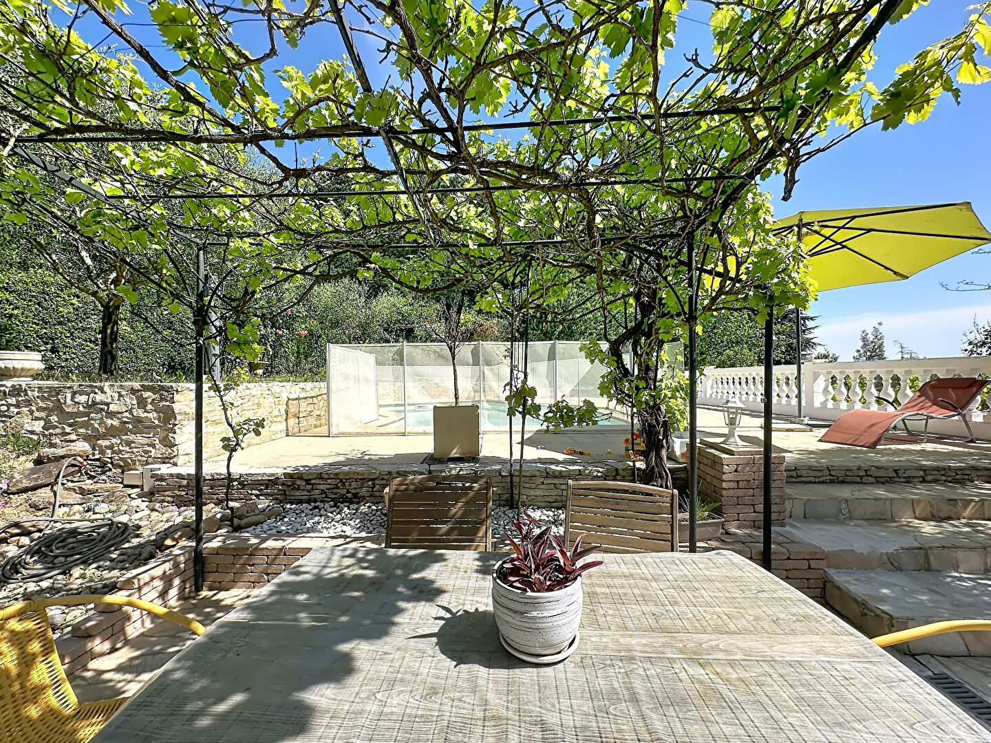 À l'extérieur, laissez-vous charmer par une magnifique terrasse agrémentée d'une pergola treille recouverte d'une vigne grimpante, véritable invitation à la détente et aux moments de convivialité.