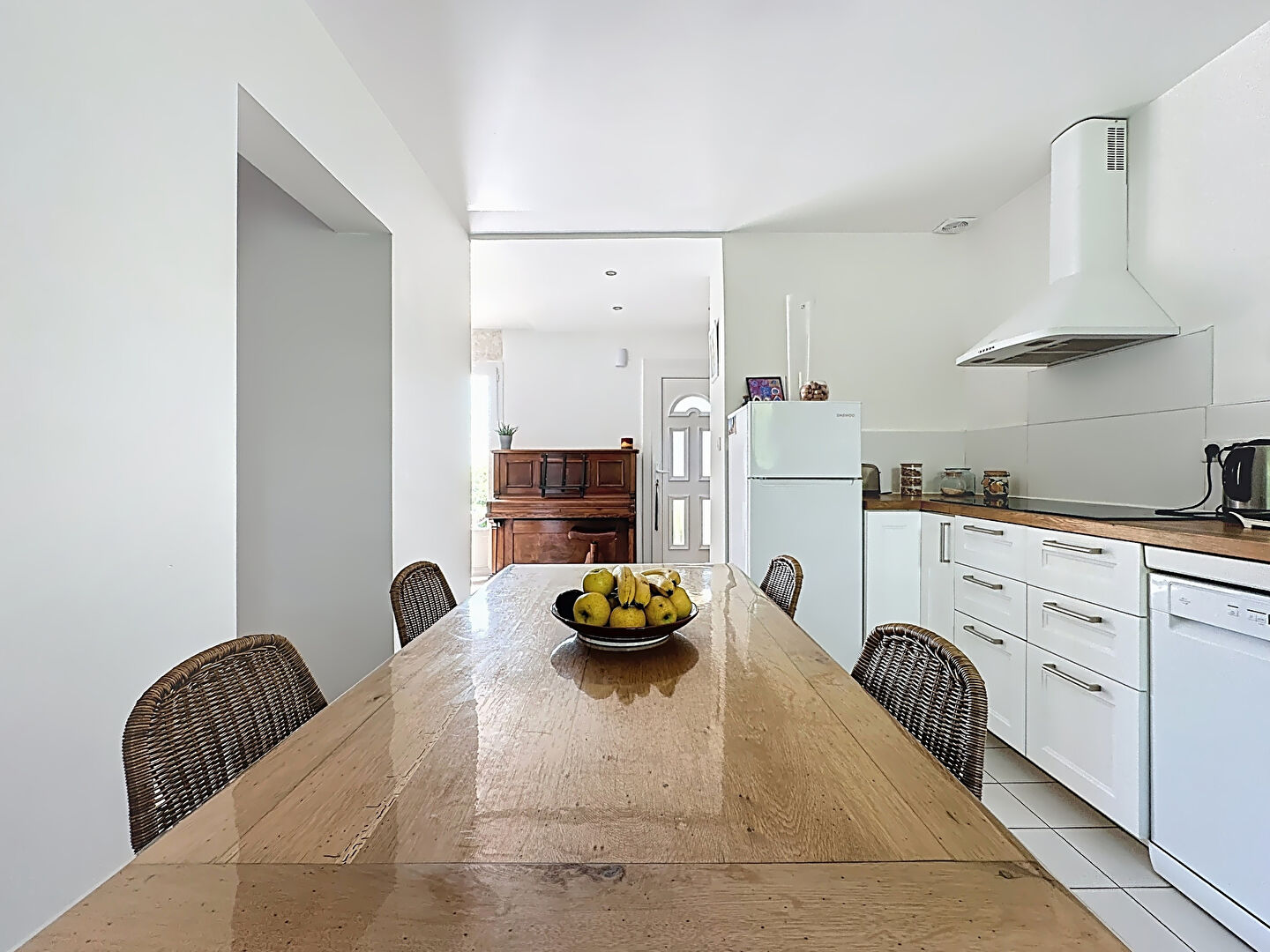 Dès l'entrée, vous serez séduit par une distribution harmonieuse : une cuisine aménagée et équipée, semi ouverte sur un séjour/salon lumineux, créant un espace de vie chaleureux et convivial. Avec split clim réversible et poêle à granulés pour un confort optimal en toute saison.