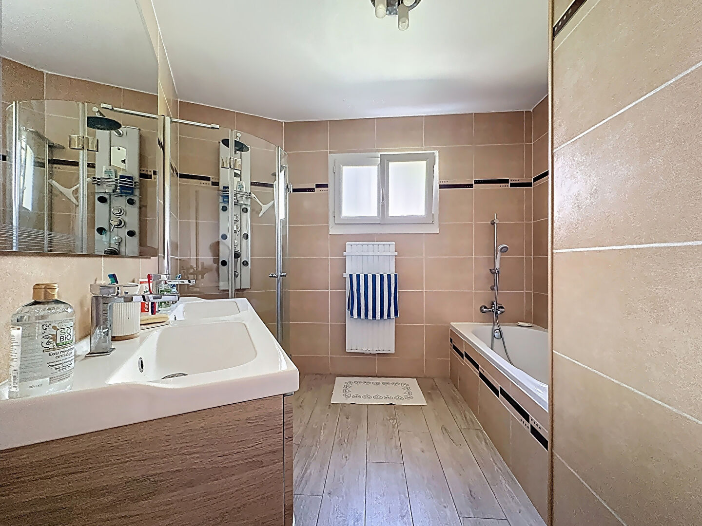 Côté nuit, 3 belles chambres, placards une salle de bain complète avec douche ainsi que des toilettes séparées avec lave-mains .