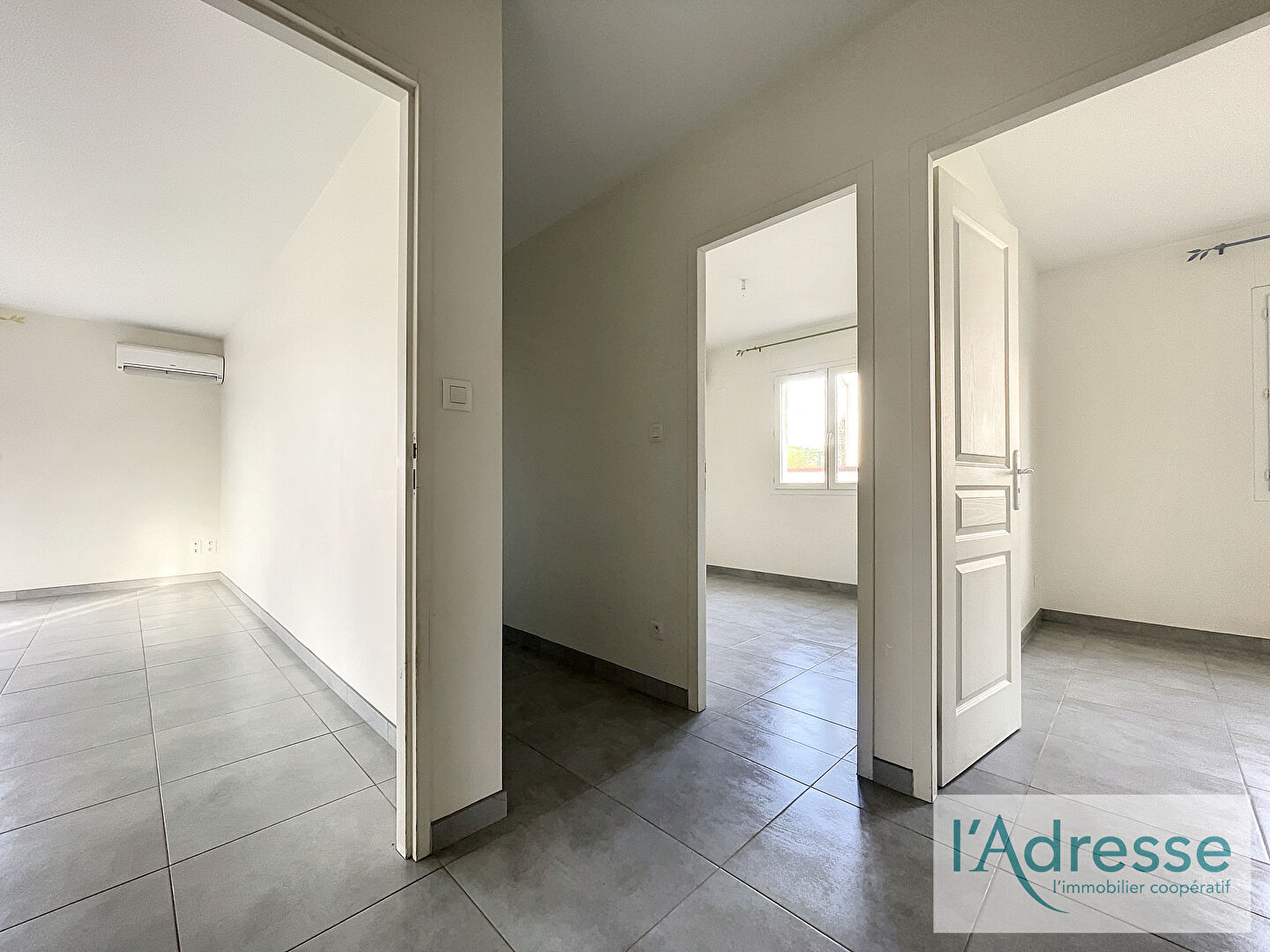 AU CALME !!! Maison de plain pied mitoyenne par le garage, composée d'un séjour lumineux climatisé, 3 chambres dont une avec grand placard SDB et WC séparé. Les chambres sont climatisées. Sur une parcelle d'environ 305m² .
